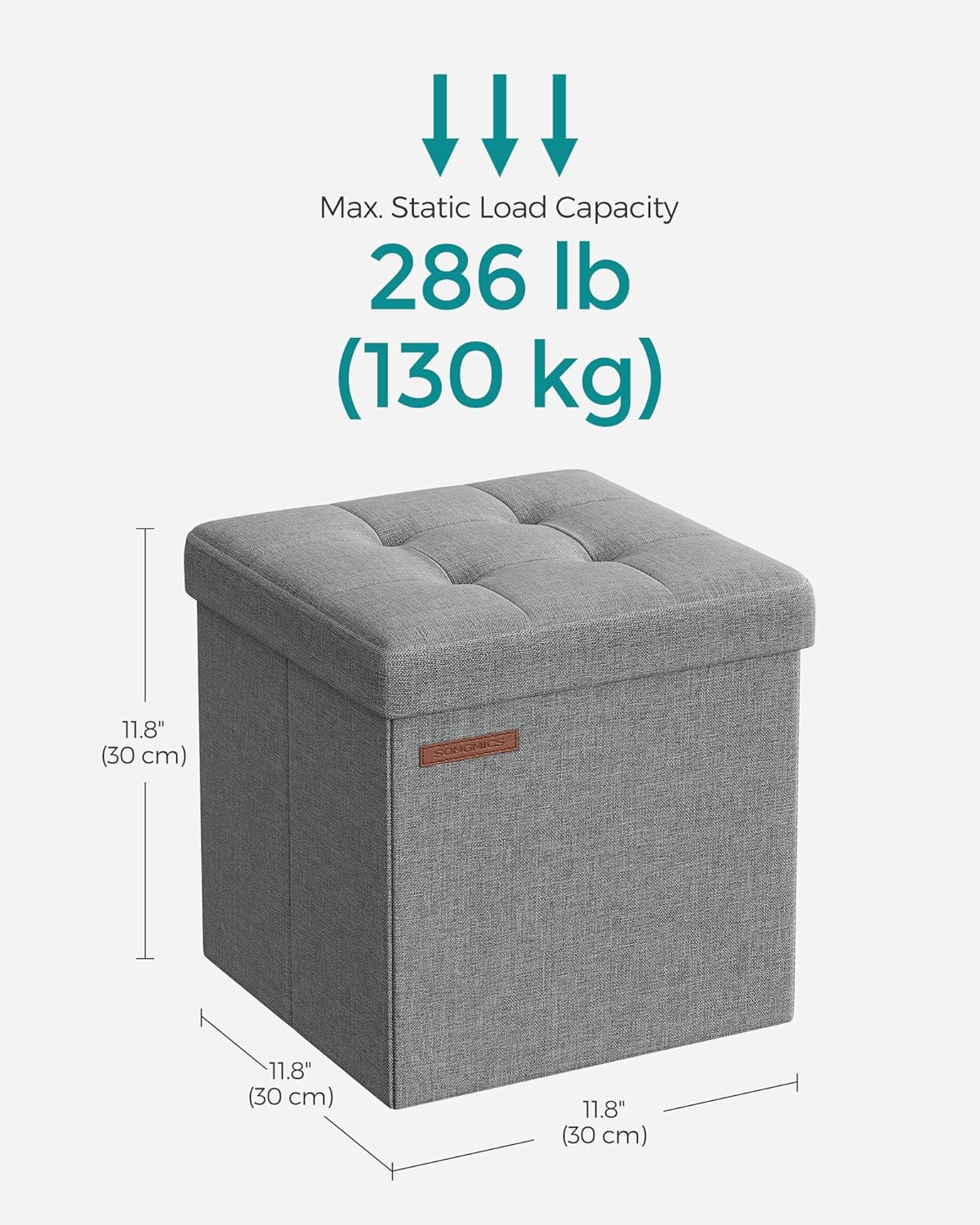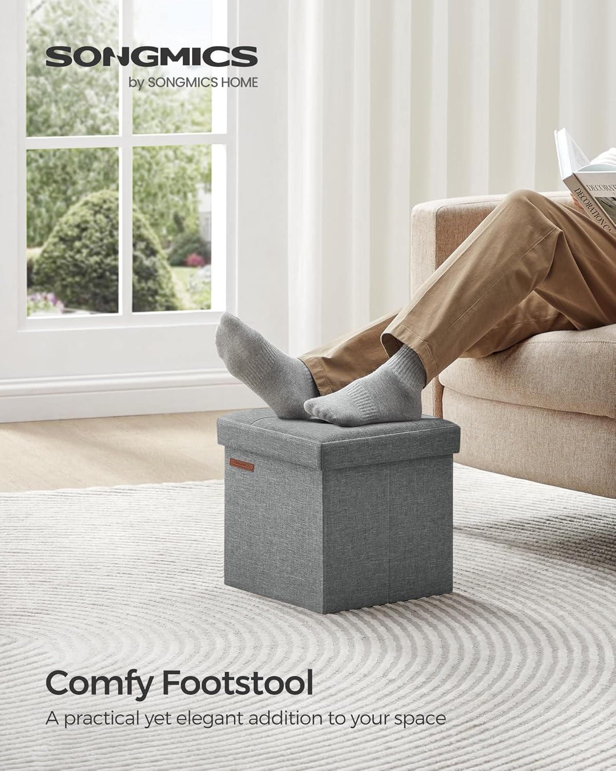 SONGMICS Storage Ottomans, Set of 2, Foldable Small Ottoman Foot Rests, 11.8 Inches Foot Stool, Cube Ottoman with Storage, Each Load up to 286 lb, for Living Room, Bedroom, Dorm, Light Gray ULSF028G22