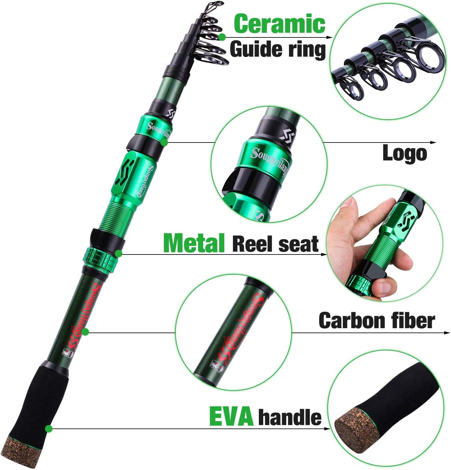 3. Sougayilang Green 3.0m, 9.84Ft Telescopic Fishing Rod - 24 Ton Carbon Fiber,CNC Machined Reel Seat, Comfortable EVA Handle, Travel Fishing Rod for Bass Trout Fishing
