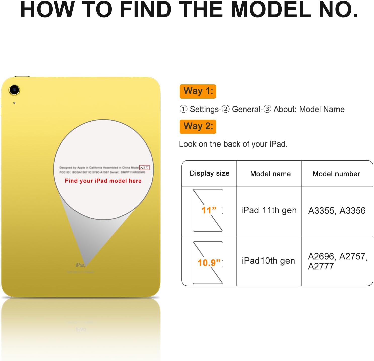Please note that it only fit for iPad 11th A16/10th generation (11 inch 2025 &10.9 inch 2022) (Model: A3355,A3356,A2696,A2757,A2777), you can check the model no at the bottom of back side on your iPad