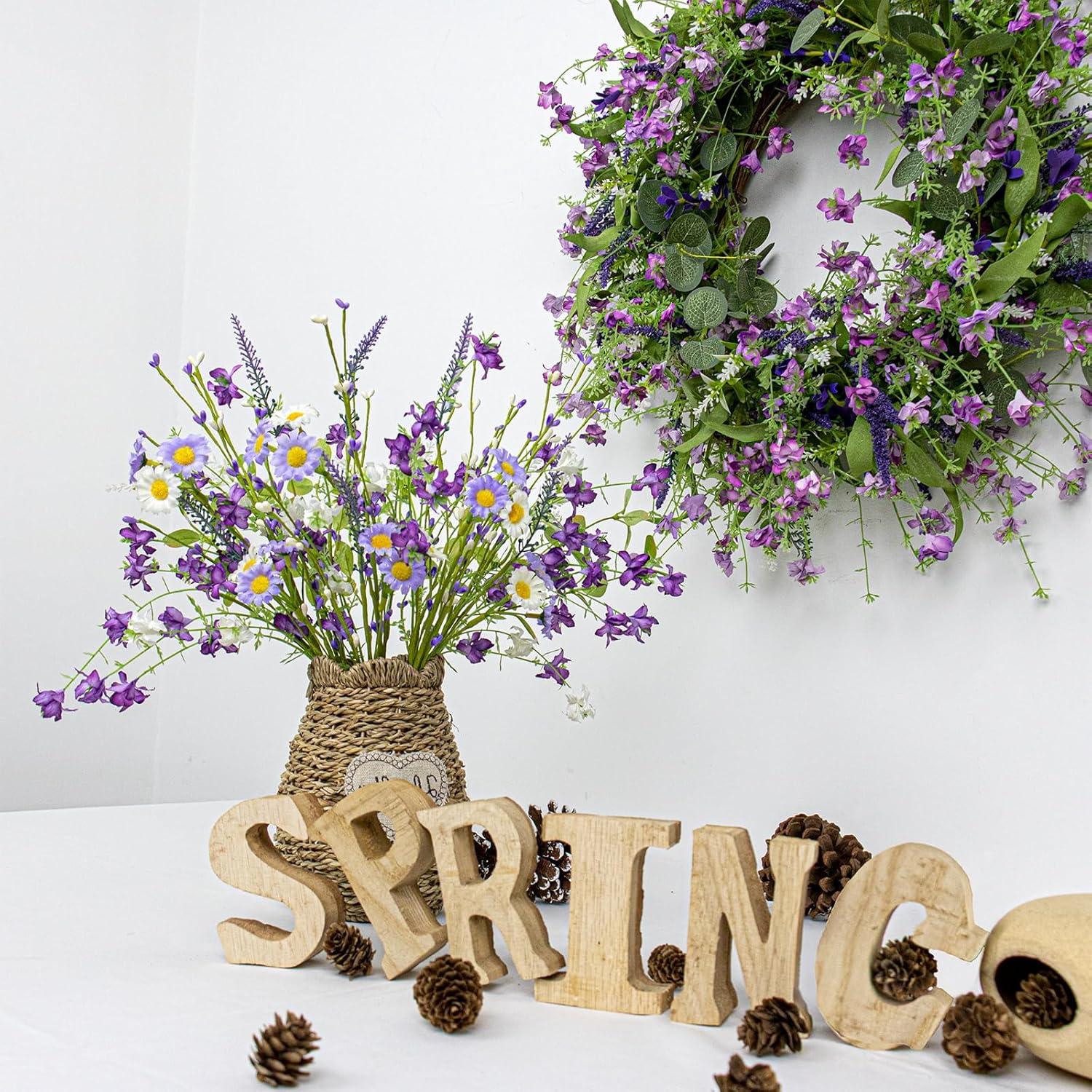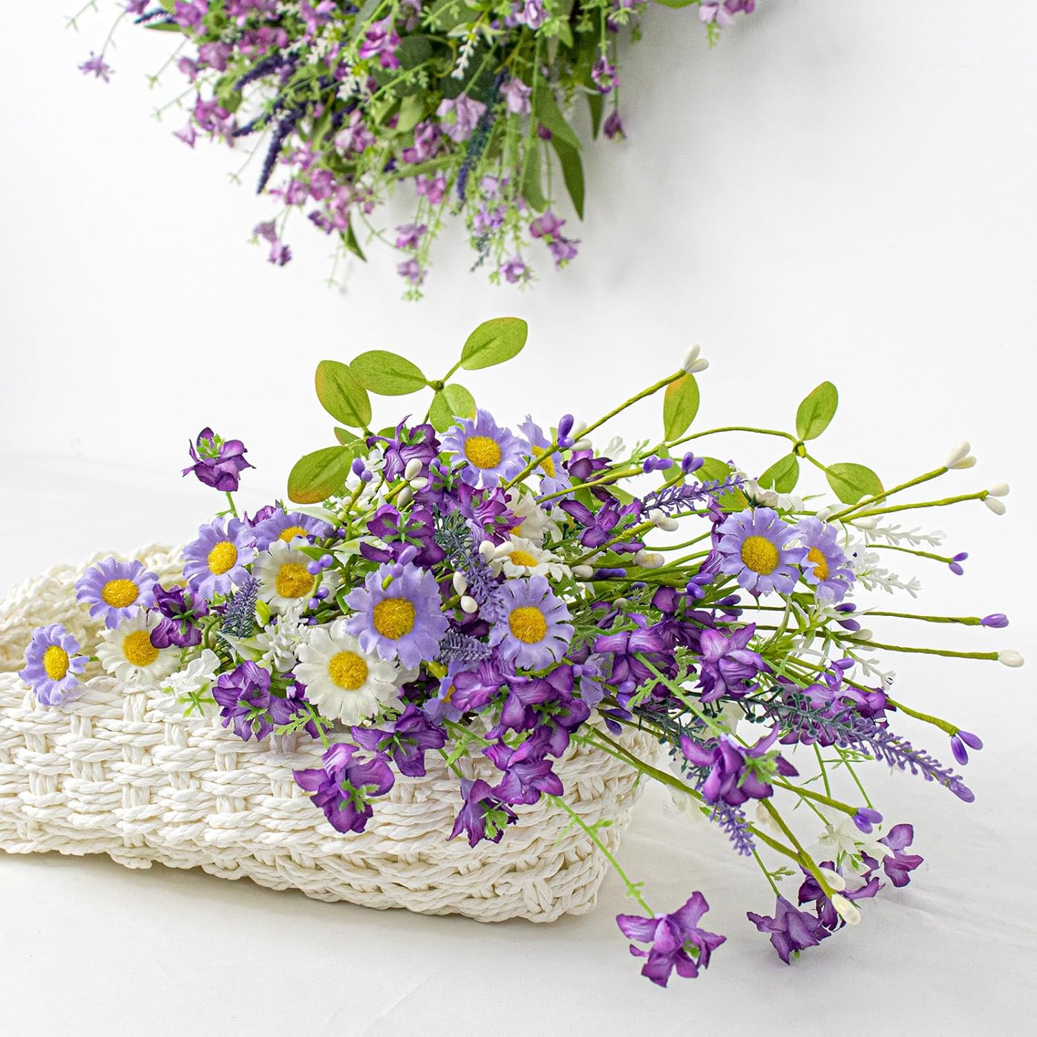 【Unique Style】: The 12 artificial spring flowers have daisies, lavender and berries, the combination of purple and white makes these spring floral stems look more noble and elegant, making the spring decorations for home more distinctive.