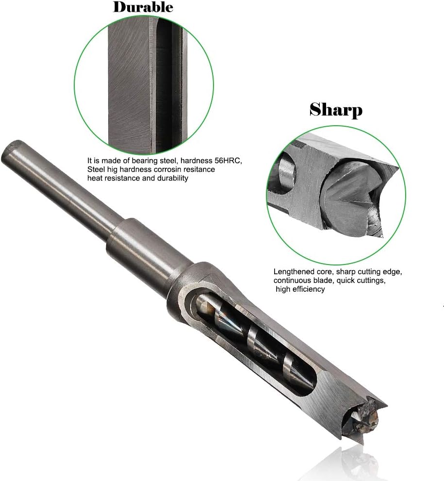 ???? Drills precise holes with little pressure -- Using different specifications of the square hole drill, matching the appropriate power of the square hole machine, you can play a square hole to meet the requirements - 1/2-Inch(12.7mm), 1/4-Inch(6mm), 3/4inch(19mm), 3/8-Inch(9.5mm), 5/8-Inch(16mm), 5/16-Inch(8mm), 9/16-Inch(14mm).