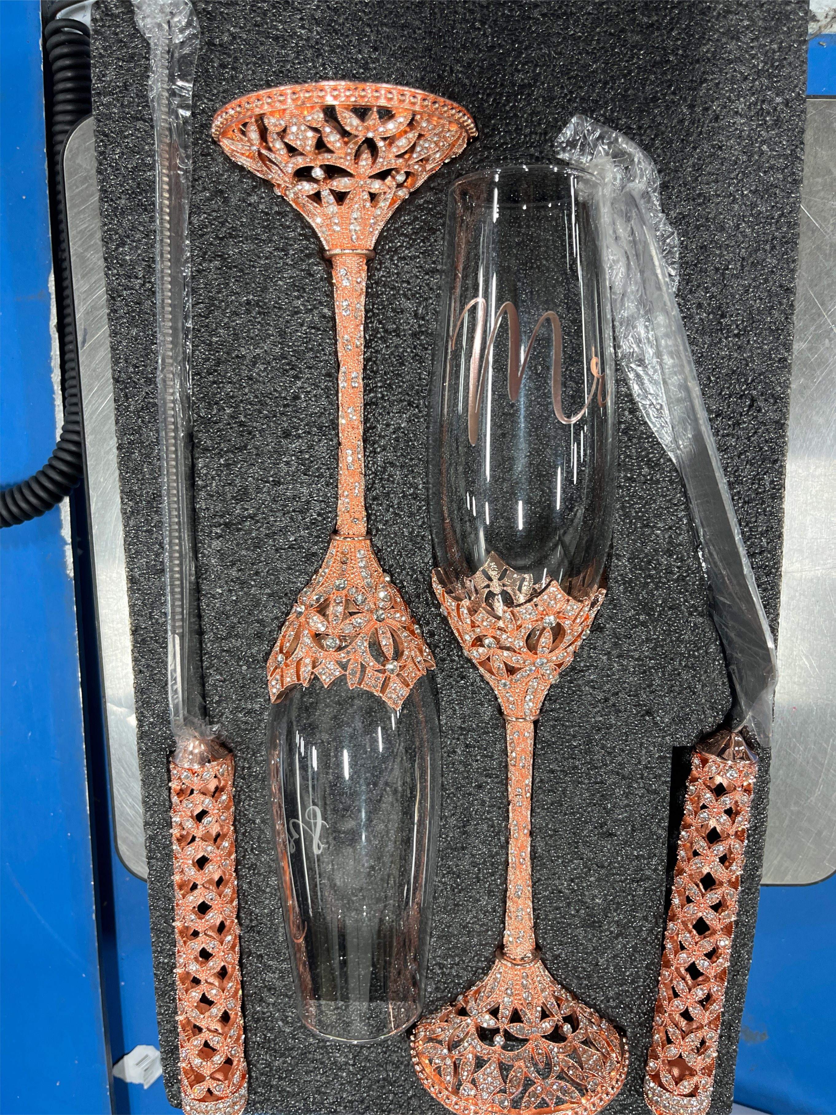 Quality Materials: the rose gold wedding flute is made of quality glass, which is safe and exquisite; The wedding knife and server are made of stainless steel, which is strong and pointed; The edge of the knife is slightly serrated, which can be precisely sliced and served