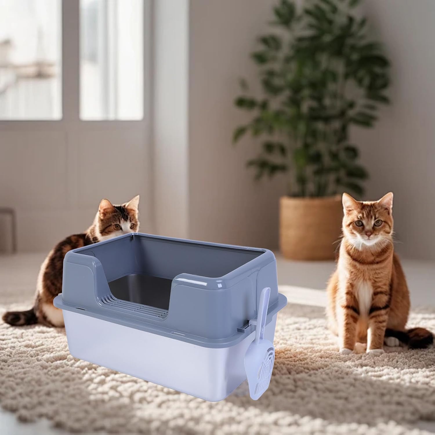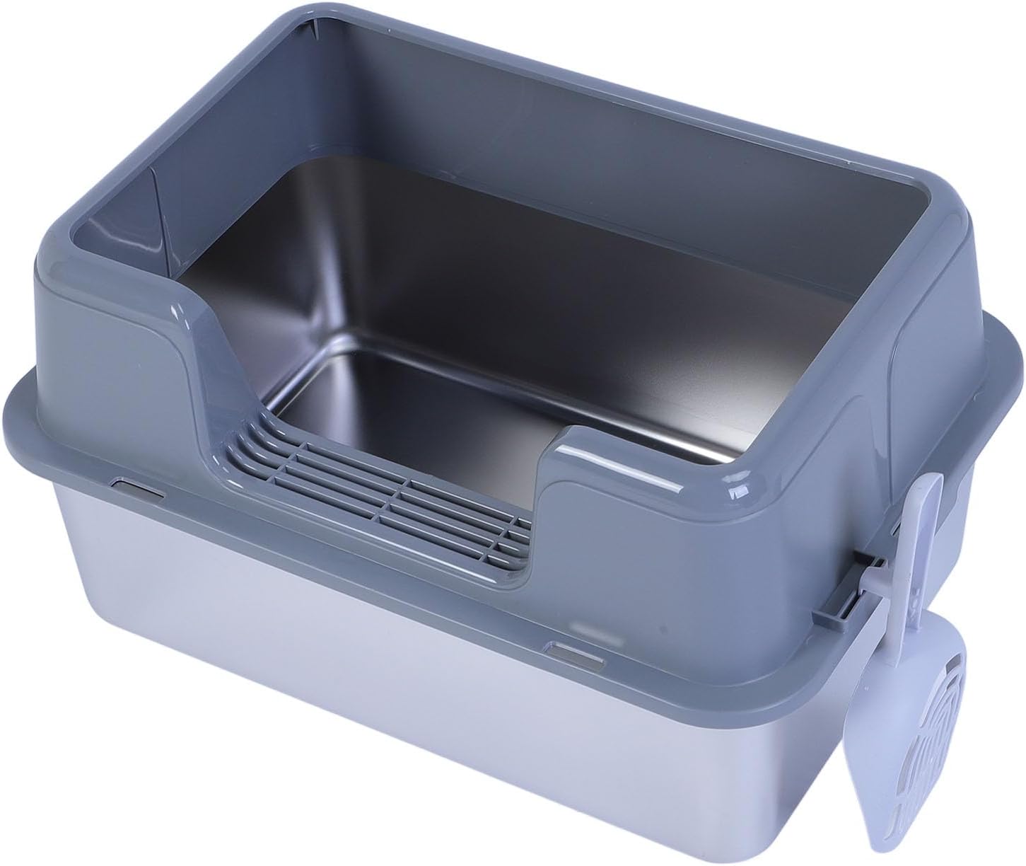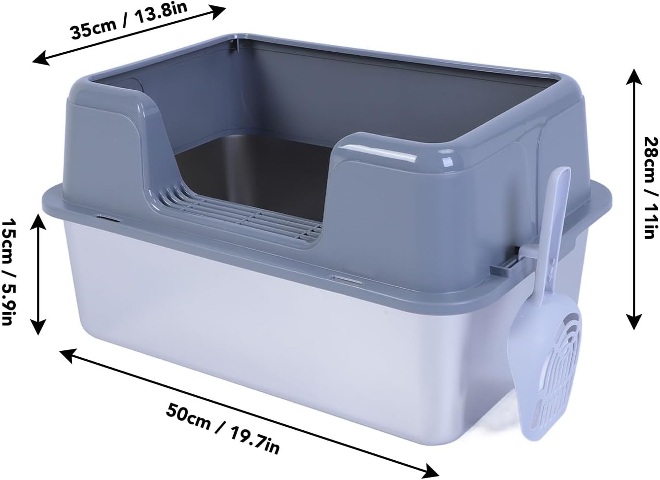 Stainless Steel Cat Litter Box Large High Sided Open Top Anti Splashing Easy to Clean Kitty Litter Tray for Indoor Cats Multi Cat Households Durable Proof Odorless 19.7 x 13.8 x (Grey)