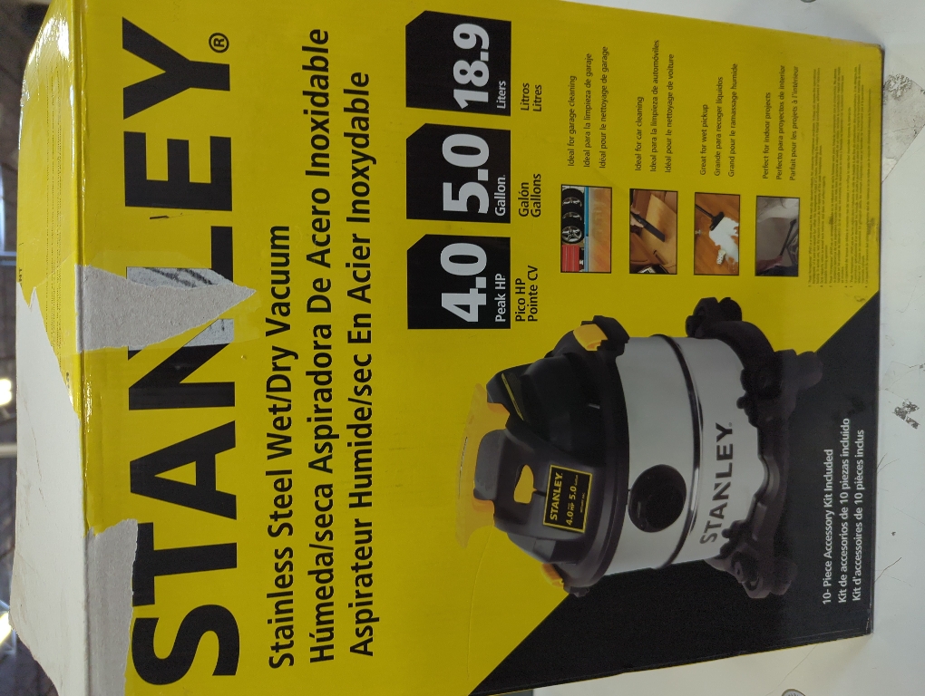 1missing extension wand,gulper nozzle missing, disposable filter bag missing resuable filter missing clamp ring missing【LARGER CAPACITY】Stanley SL18115 Wet / Dry Vacuum has a larger capacity over 18. 5 L, makes small clean-up jobs a breeze for you as you don’t have to empty the bucket frequently any more. Airflow-85 CFM