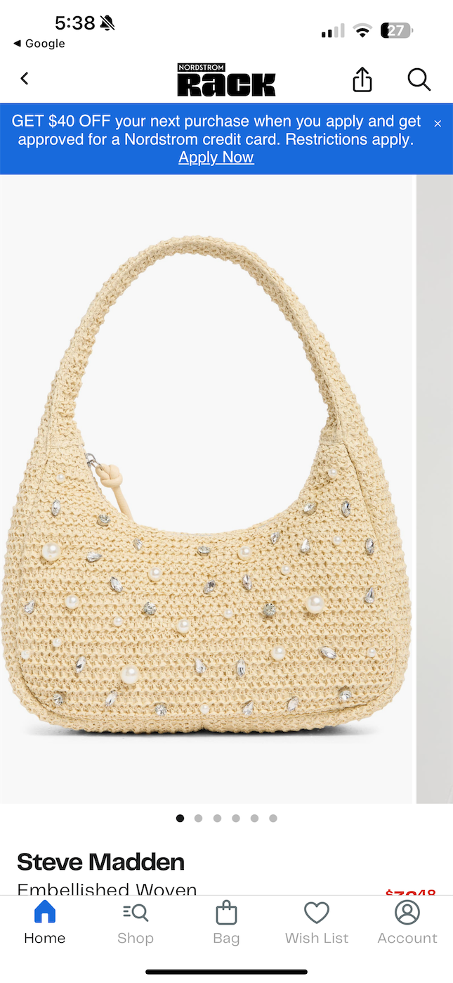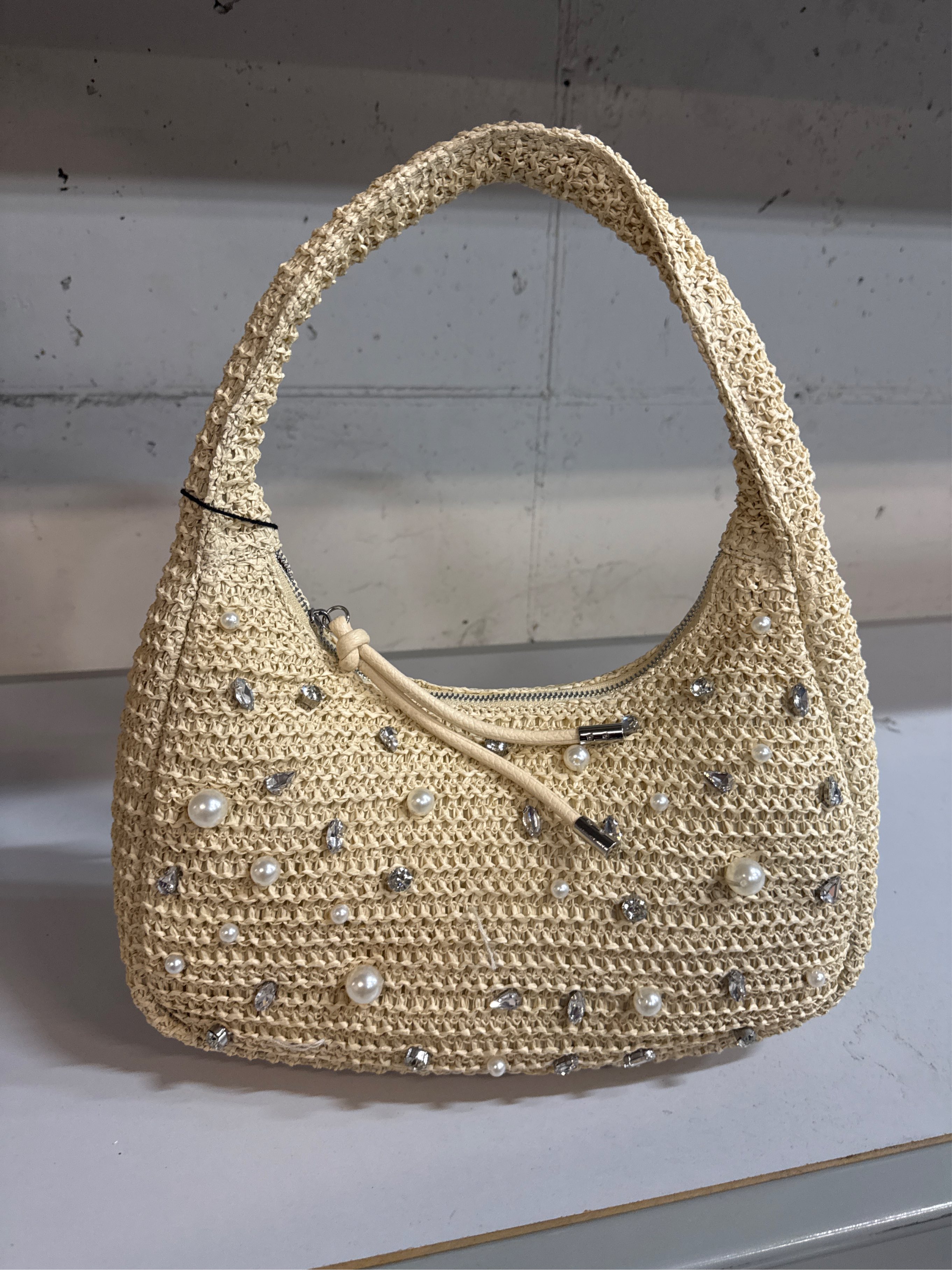 Steve Madden Embellished Woven Shoulder Bag ( missing one pearl see details in the picture)