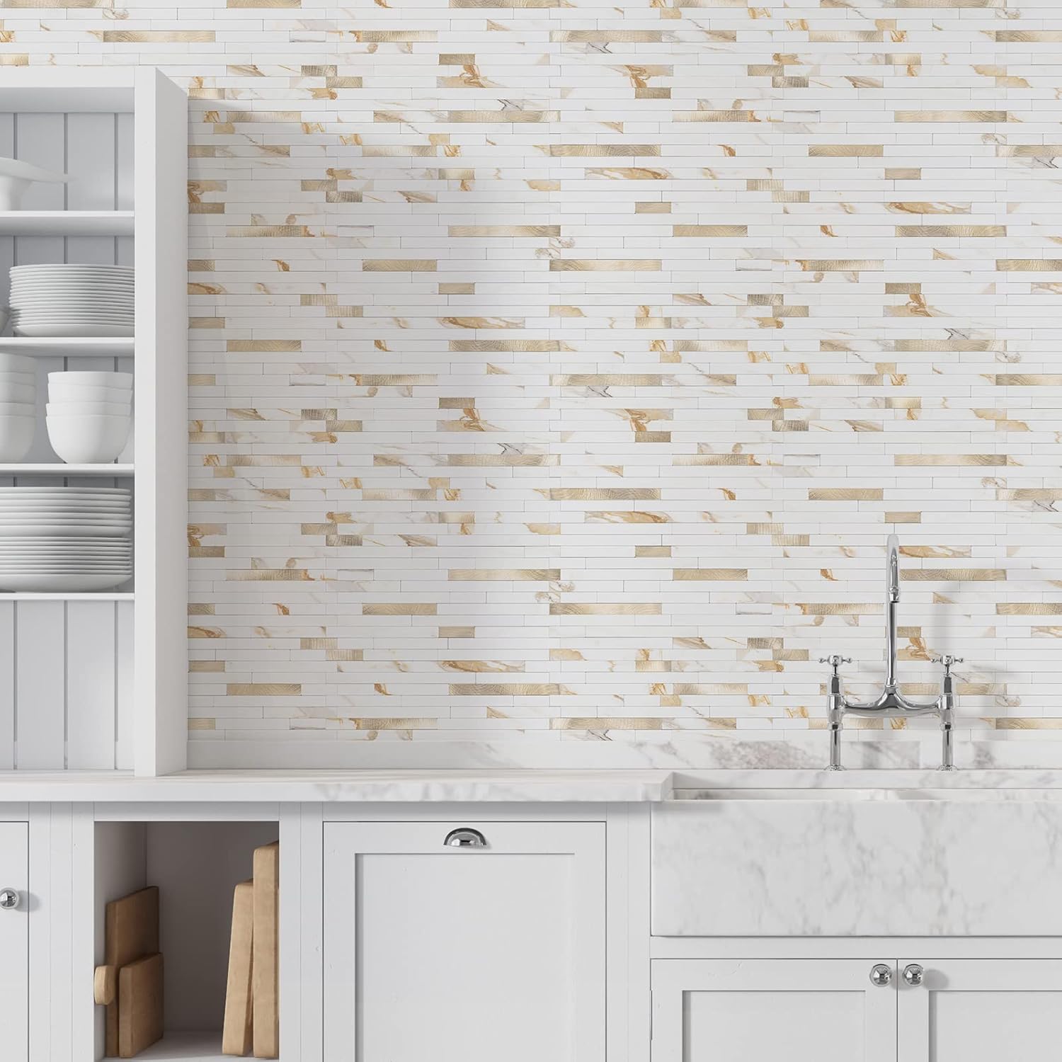 STICKGOO 20 Sheets Peel and Stick Backsplash Tile, Stick on Backsplash for Kitchen and Bathroom, Calacatta Gold Marble Look PVC Mixed Gold Self Adhesive Wall Tiles