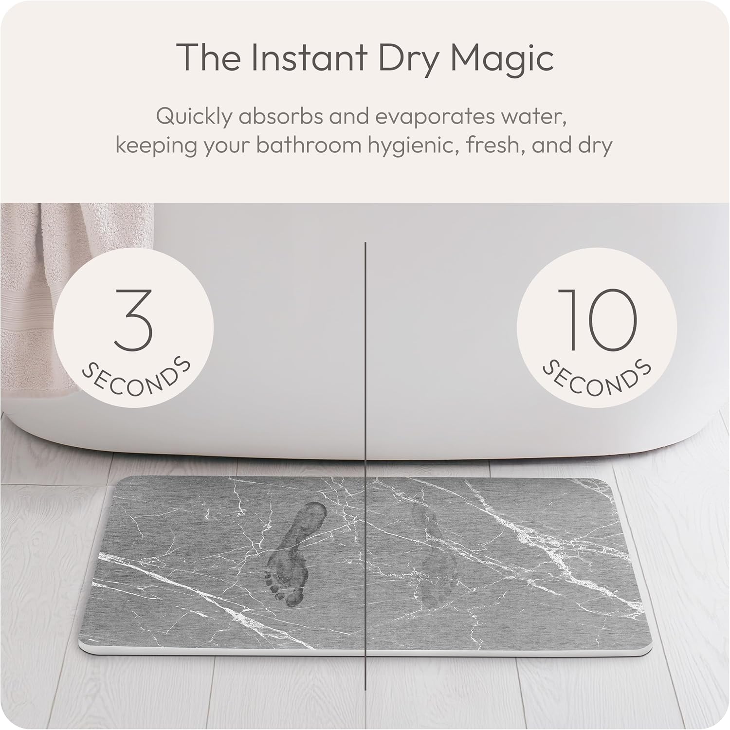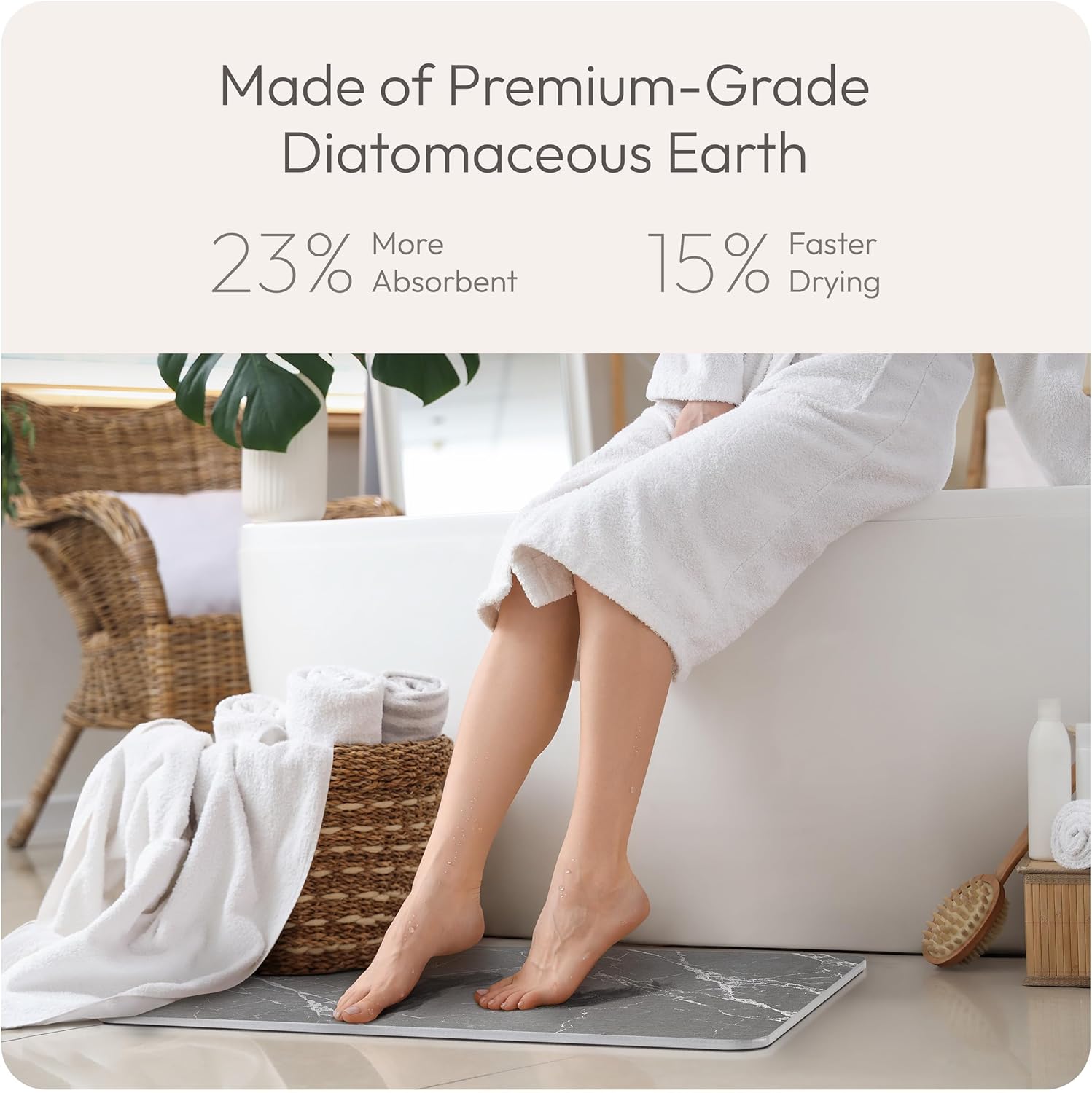 Ultra-Absorbent & Quick-Dry. These stone bath mats for bathroom absorb 23% more and dry 15% faster than standard ones thanks to high-silica diatomaceous earth: porous structure pulls in moisture instantly to keep the floor hygienic and shower-ready