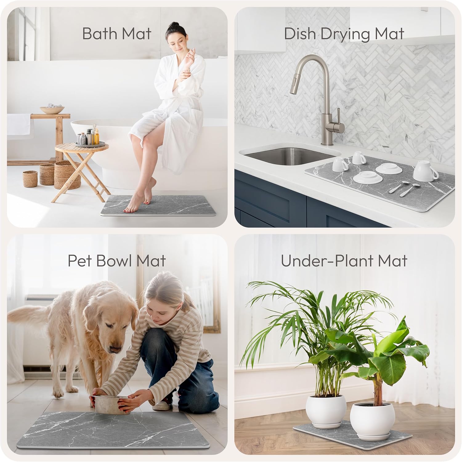Beyond The Bathroom. This isn’t just for wet feet: use the stone bathroom mat in the kitchen, under plants and pet bowls, or anywhere spills happen. The included mini-mat adds extra flexibility for no-fuss moisture control all around the house