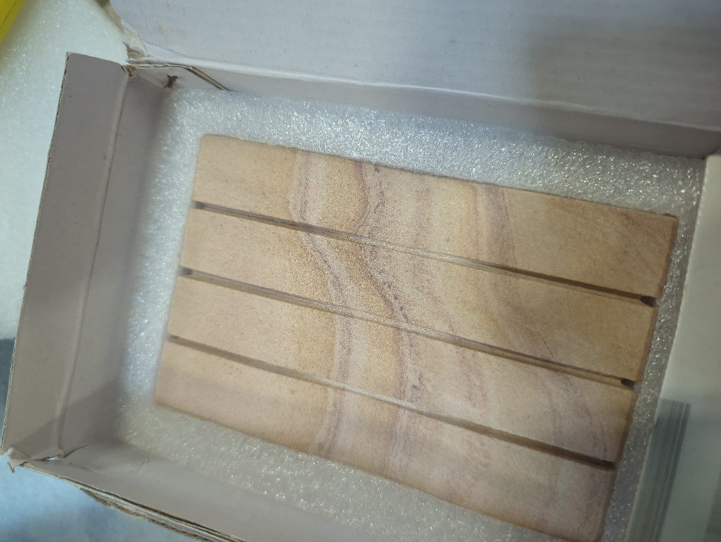 New damged box..This stone is a rough in look but is a natural Water Absorbent. It absorbs excess water of Soap keeping the Soap dry.
