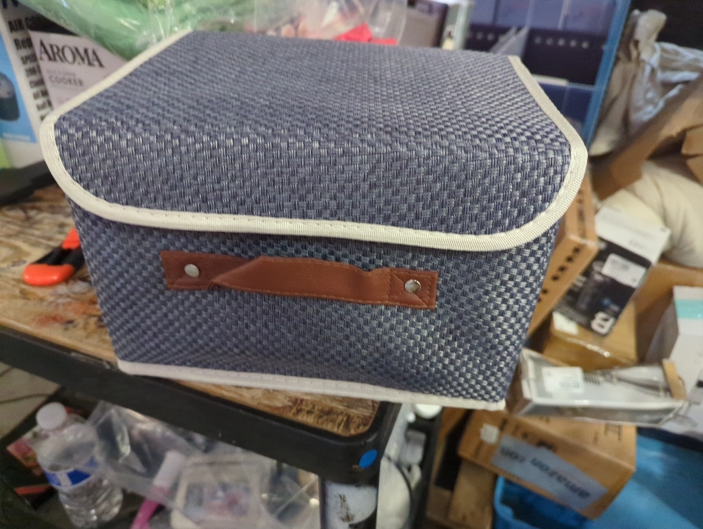 Package Includes: 1 pack small fabric storage bin measuring 10" x 8" x 7". Color: Gray. Lid Type: Flip-top.