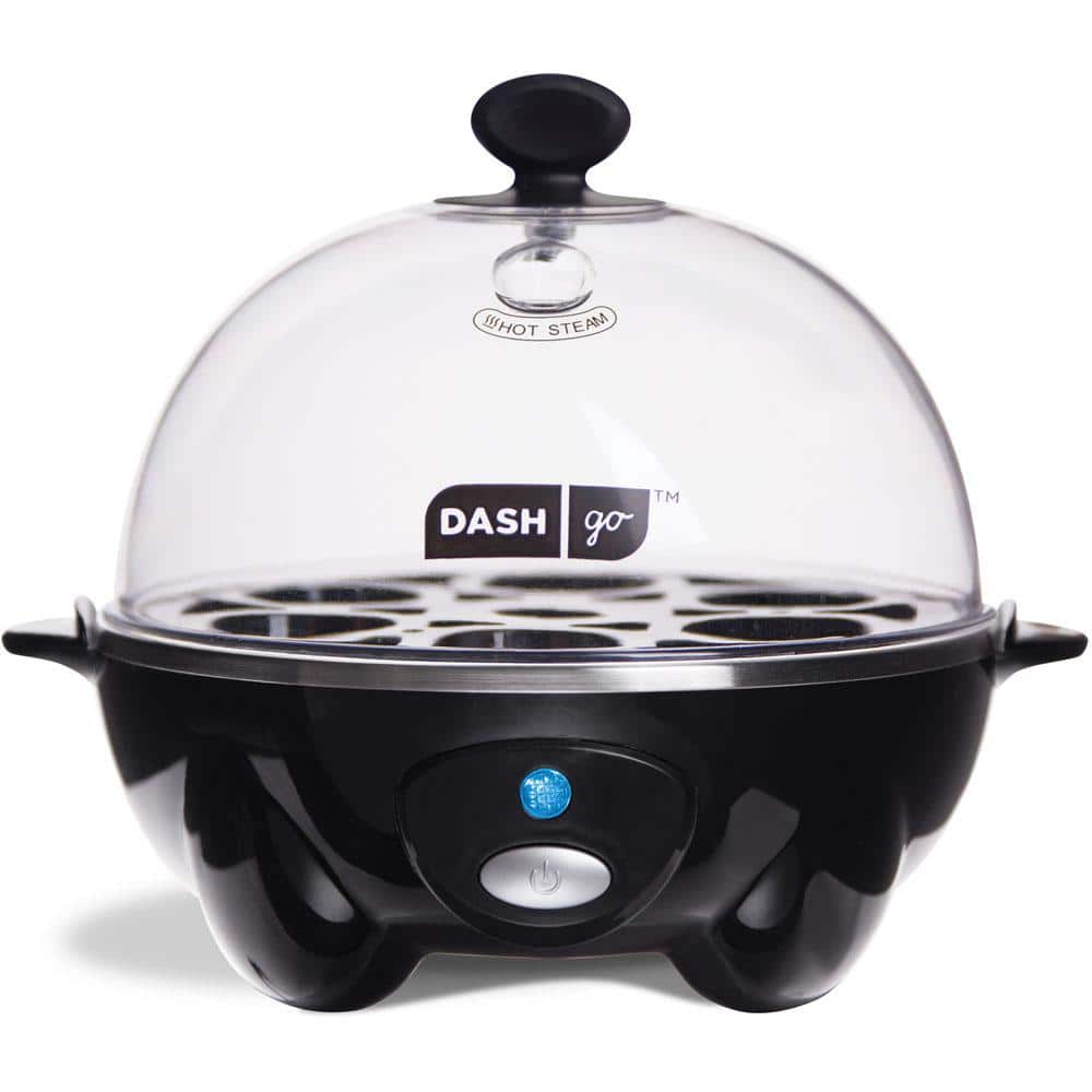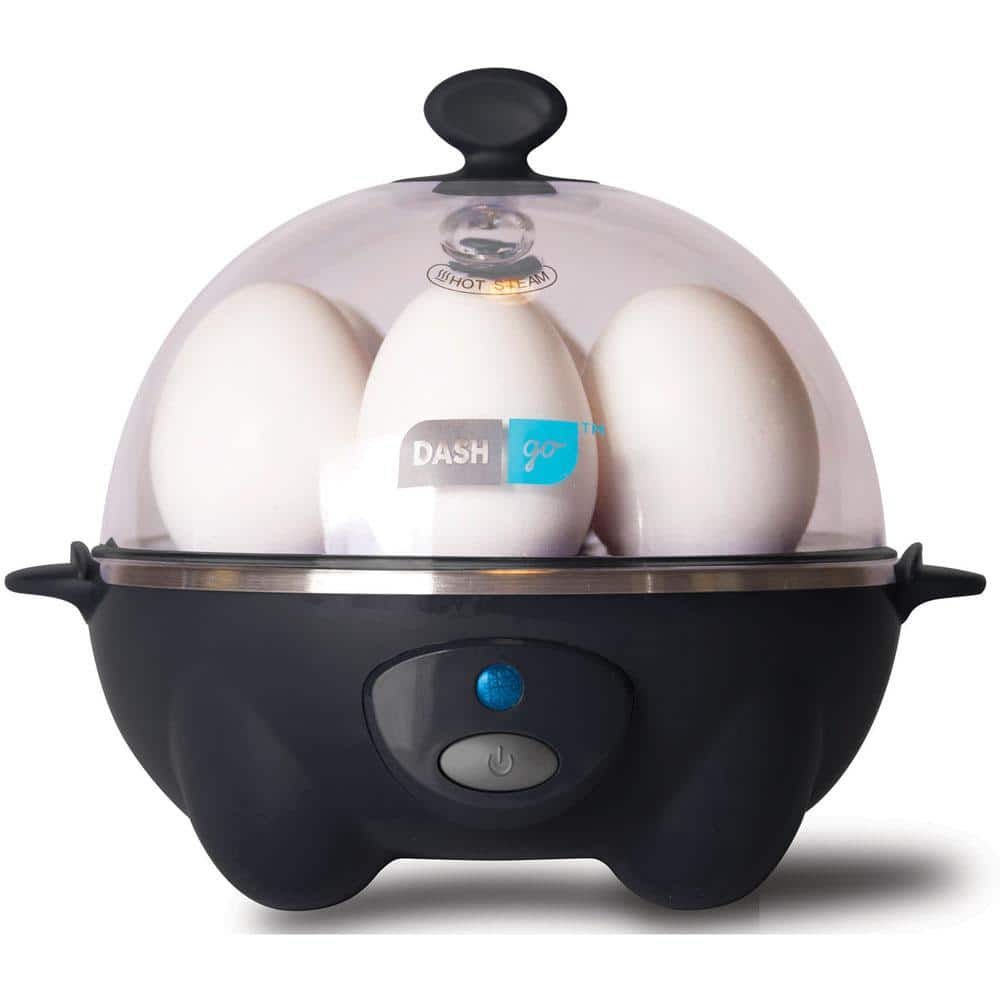 The StoreBound DEC005BK Dash Rapid 6-Egg Cooker in black, takes the hassle out of cooking eggs. Make up to six soft, medium and hard boiled eggs in 12 minutes or less in BPA-free egg tray. Poach up to 2 eggs with separate, non-stick poaching tray. A bell sounds when cooking is complete. From boiled to poached, this compact countertop egg cooker does it all.. Black BPA-free electric egg cooker boils up to 6 eggs at once. Poach up to 2 eggs at once with the non-stick poaching tray. Accessories are easy to store and dishwasher safe. Electric egg cooker prepares up to 6 eggs at once. Makes soft, medium and hard boiled eggs in 12 minutes or less. Poach up to 2 eggs at once. Bell sounds when cooking is complete. Delicious recipes included in manual. Color: Black. Appliance Type: Egg Cooker. Boiled Egg Capacity: 6. Color/Finish: black. Color/Finish Family: Black. Features: No Additional Features. Number of Pieces: 7. Number of Temperature/Cooking Controls: 1. Product Weight (lb.): 1 lb. Small Appliances Color Family: Black. Small Electric Product Type: Egg Cooker. Wattage (W): 360. Certifications and Listings: No Certifications or Listings. Product Depth (in.): 11 in. Product Height (in.): 7.36 in. Product Width (in.): 6.29 in