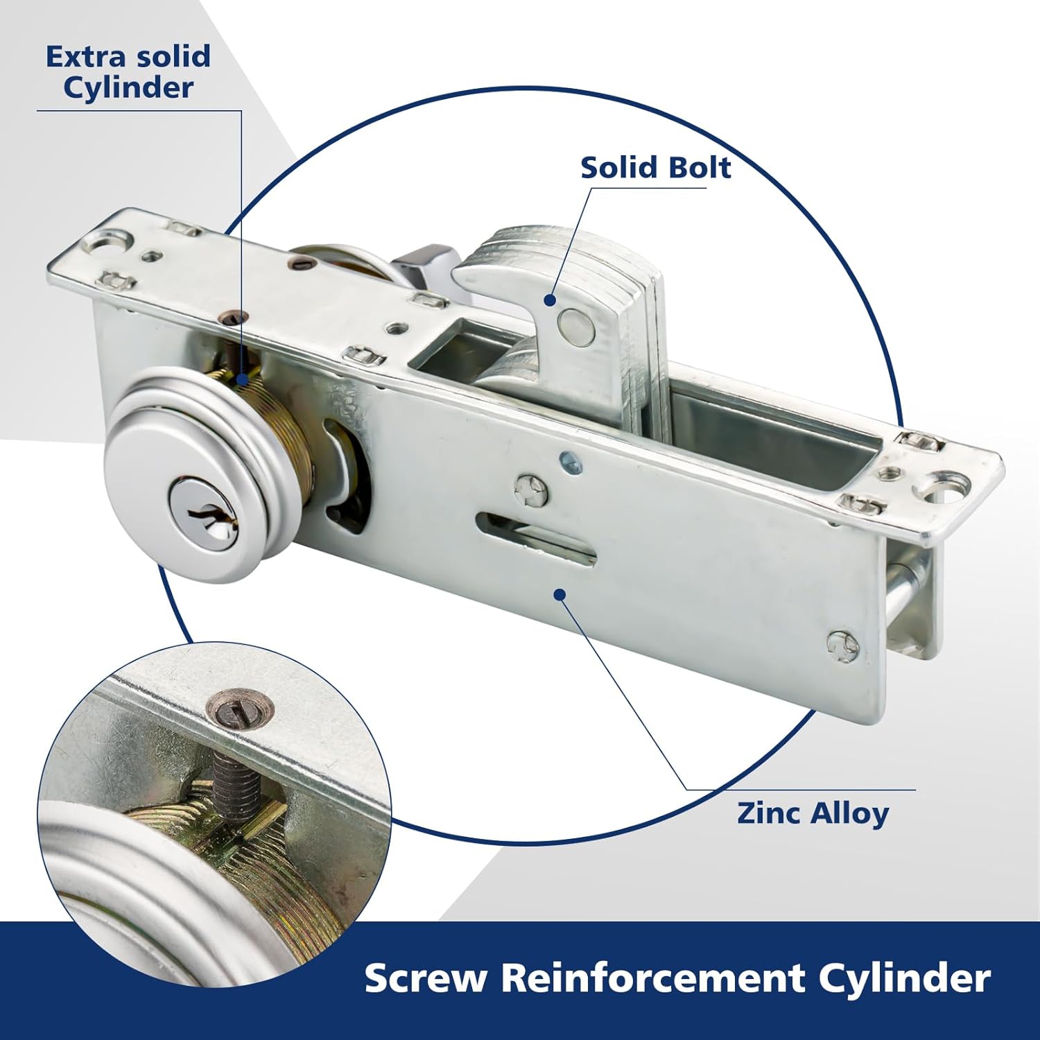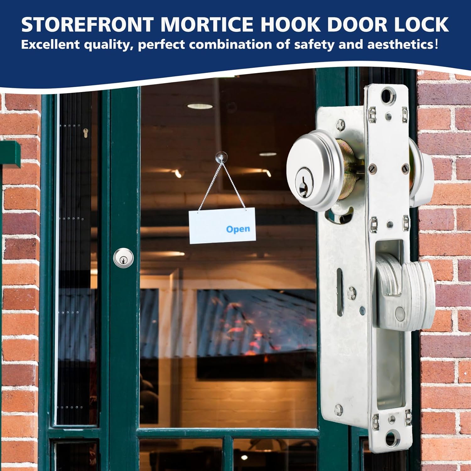 Storefront Mortice Hook Door Lock, Commercial Door Locks Mortise Cylinder, Storefront Door Mortise Lock Hook Deadbolt(1-1/8" Backset)