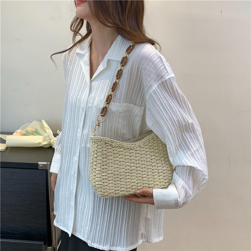 Straw Shoulder Bag Summer Woven Tote Bag Underarm Purse Satchel for Vacation