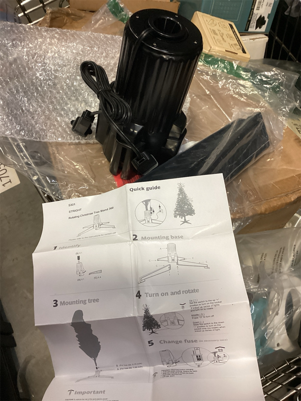 Quick set-up: The stand comes in 5 easy to assemble pieces; the motor/base and four legs. The stand in dark green color blends in with your tree. Measures 23" x 23" x 7.25".