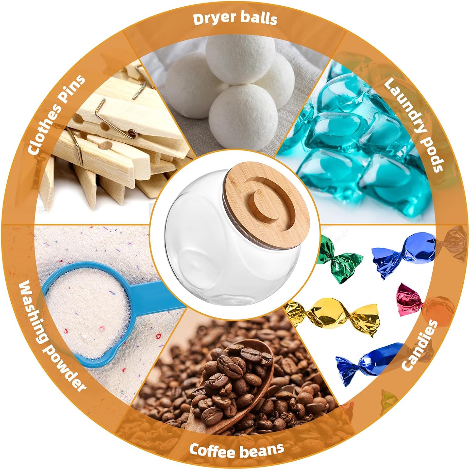 【Multiple uses】: In addition to wool balls, it can also hold laundry pods, clothes clips,candy,cookie,etc.
