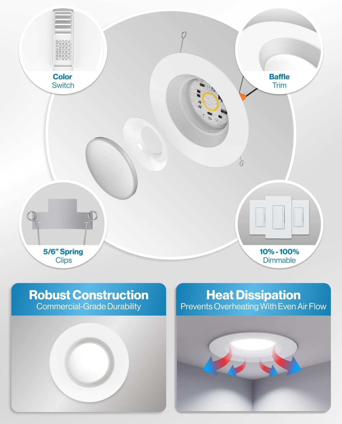 SELECTABLE CCT - Choose color temperature (2700K, 3000K, 3500K, 4000K, 5000K) to tune to your preferred color setting. Easy CCT selection with the slider switch on back. During installation, try various color temperatures to change the light quality then lock in your selection.