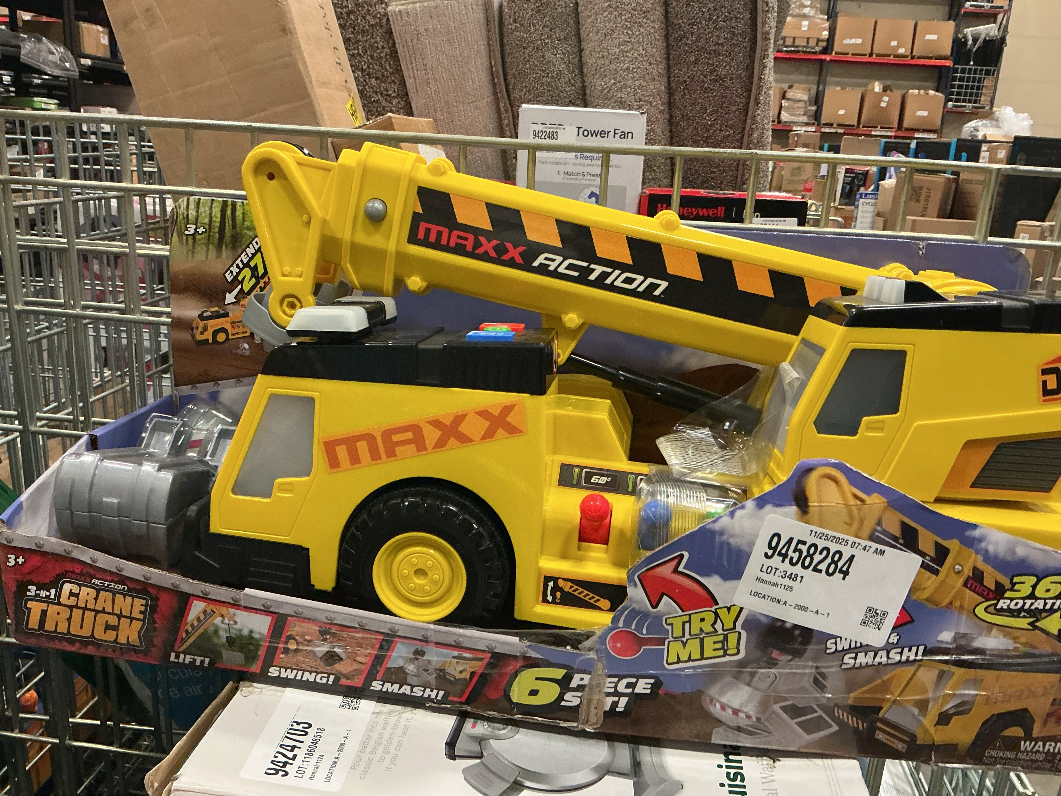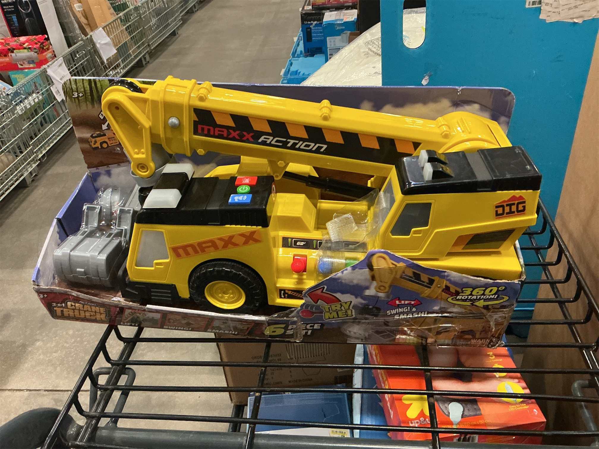 Sunny Days Entertainment, LLC. Maxx Action 27'' 3-N-1 Crane Truck - Large Construction Vehicle with Lights, Sounds and Motorized Drive | Realistic Crane with Joystick Controllers
