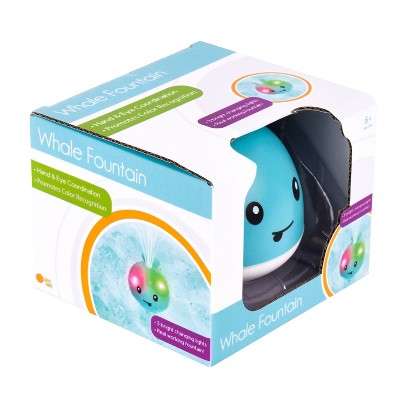 Make a splash with the Whale Fountain! The adorable aquatic creature is sure to delight kids of all ages! Featuring three bright changing lights and spraying fountain feature, it's perfect for the bath or pool. Just place in the water and the built in sensors will activate a sprinkling stream of water from the blowhole. Turn out the lights and watch as it automatically switches between red, blue and green. The interactive toy helps develop hand-eye coordination and color recognition skills through fun water play. When playtime is over, remove the whale from water, and it will automatically shut off. Dive into a world of wonder with the Whale Fountain!