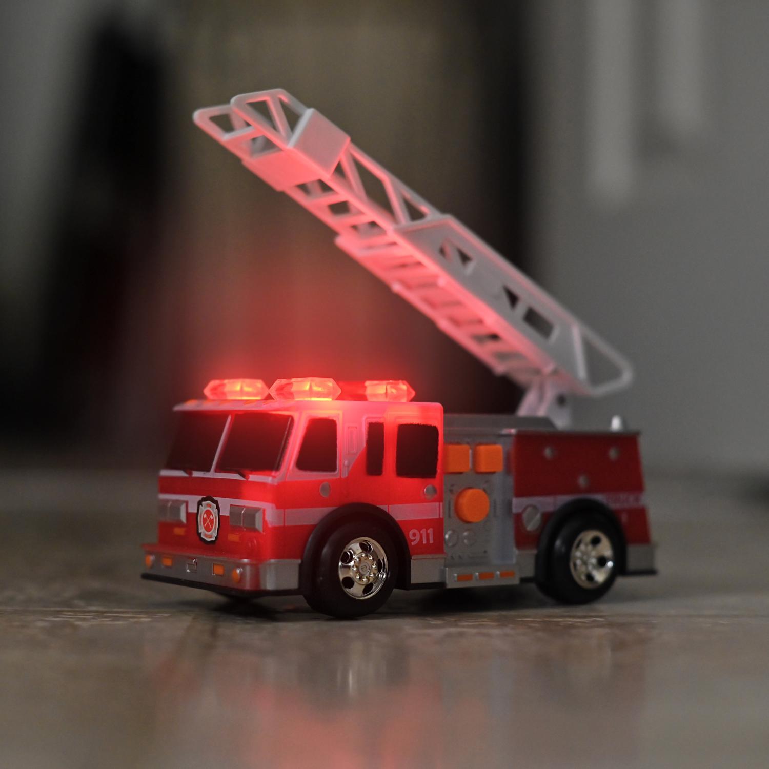 When your toys are in trouble who can they count on to come to their rescue. The Maxx Action Fire and Rescue Vehicles are ready to swoop in and save the day. The helicopter can make an emergency landing with a medical airlift. The fire truck can respond to medical emergencies use the extendable ladder to guide toys to safety and put out imaginary fires. The police car is ready for high-speed chases. Use the push buttons on each vehicle to hear real sounds and see the flashing lights. They even have a friction rev motor just pull back and watch them roll. The soft super grip tires allow for a long and smooth ride as you race to the scene. With moving parts and incredible features children will have hours of fun imaginative play. Vehicles are about 5 inches long and perfectly sized for little hands.