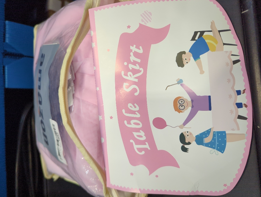 Pink tablecloth easy install: ballerina tutu table skirt sewn with loop under the top edge, and the package include hook with back adhesive. Stick the hook on the table and put the table skirt top edge right on the hook, the hook and loop stick together, done!