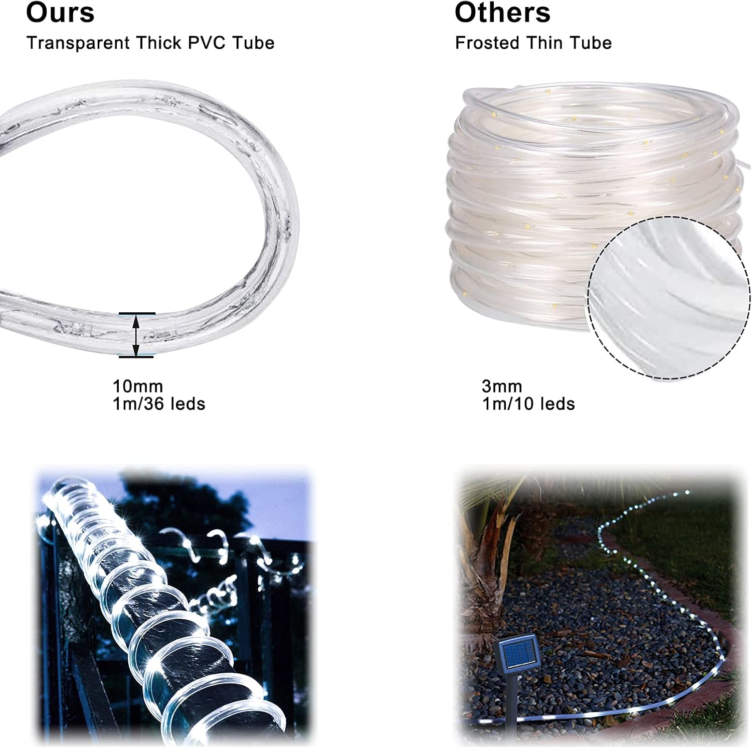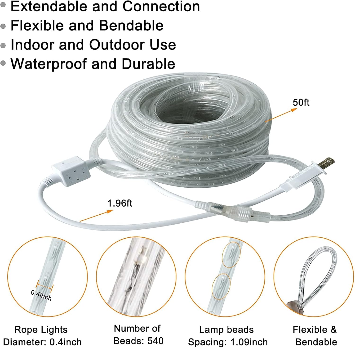 Widely Used: Equipped with a set of separate installation accessories (clips, screws, cable ties), which can save you the trouble of installing the rope lights and don't worry about falling. Crystal clear PVC tube ensures consistent bright and uniform daylight white lighting. Great for birthday, Christmas, wedding, or Halloween party decor, and also perfect for daily and holiday use.