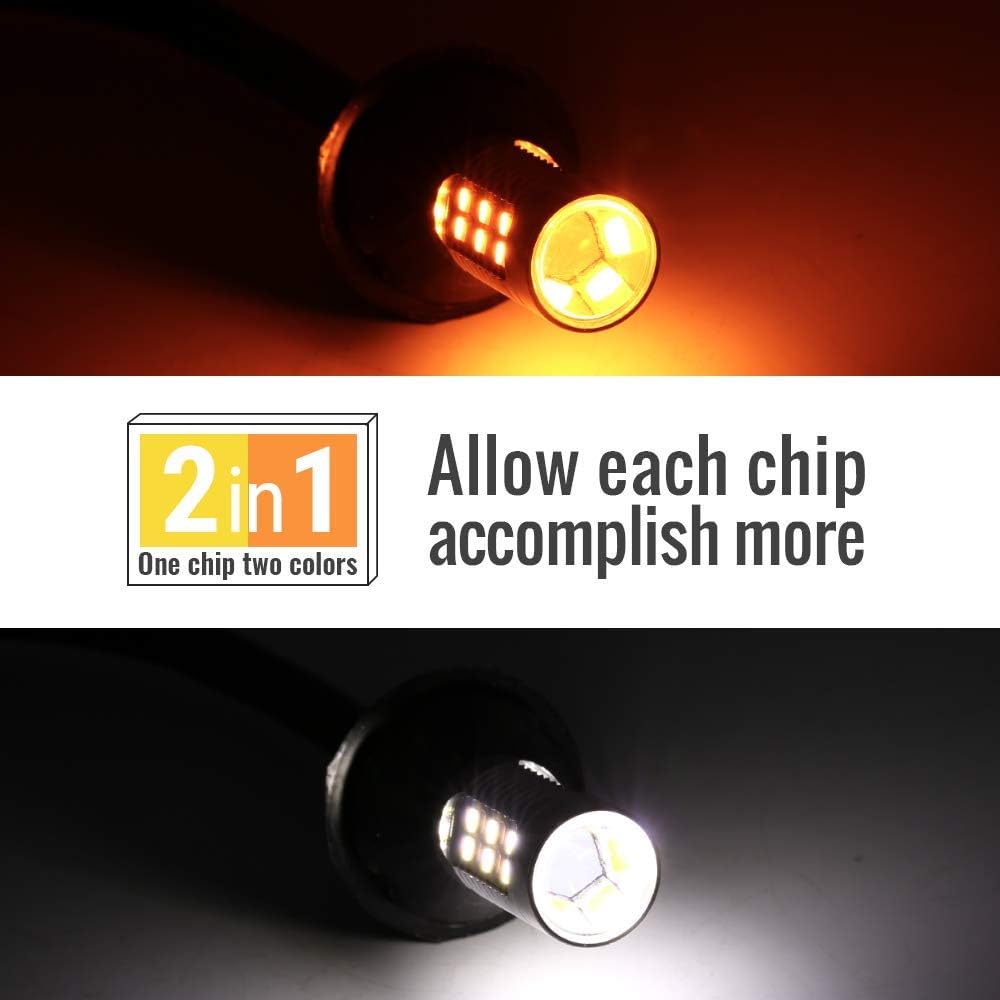 Syneticusa CANBUS 3157 Switchback LED Bulbs 3457 4157 Dual Color Amber/White Anti Hyper Flash Built-in Resistor Error Free Turn Signal Lights and DRL/Parking Lights, Pack of 2 (24 LEDs)