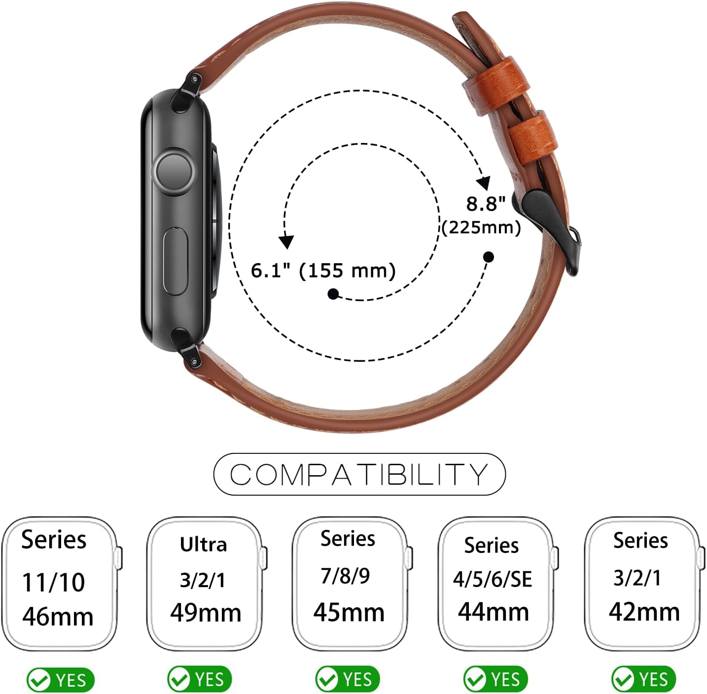 【Wide Compatibility】Tasikar Genuine Leather Band is compatible with apple watch Ultra 3(2025) Ultra 2(2023) Ultra(2022) 49mm, series 11 series 10 46mm(2024), series 9 (2023) series 8 (2022) series 7 (2021) 45mm, 44mm SE (2025) SE (2022) series 6 (2020) SE (2020) series 5 (2019) series 4, 42mm series 3 series 2 series 1 all models