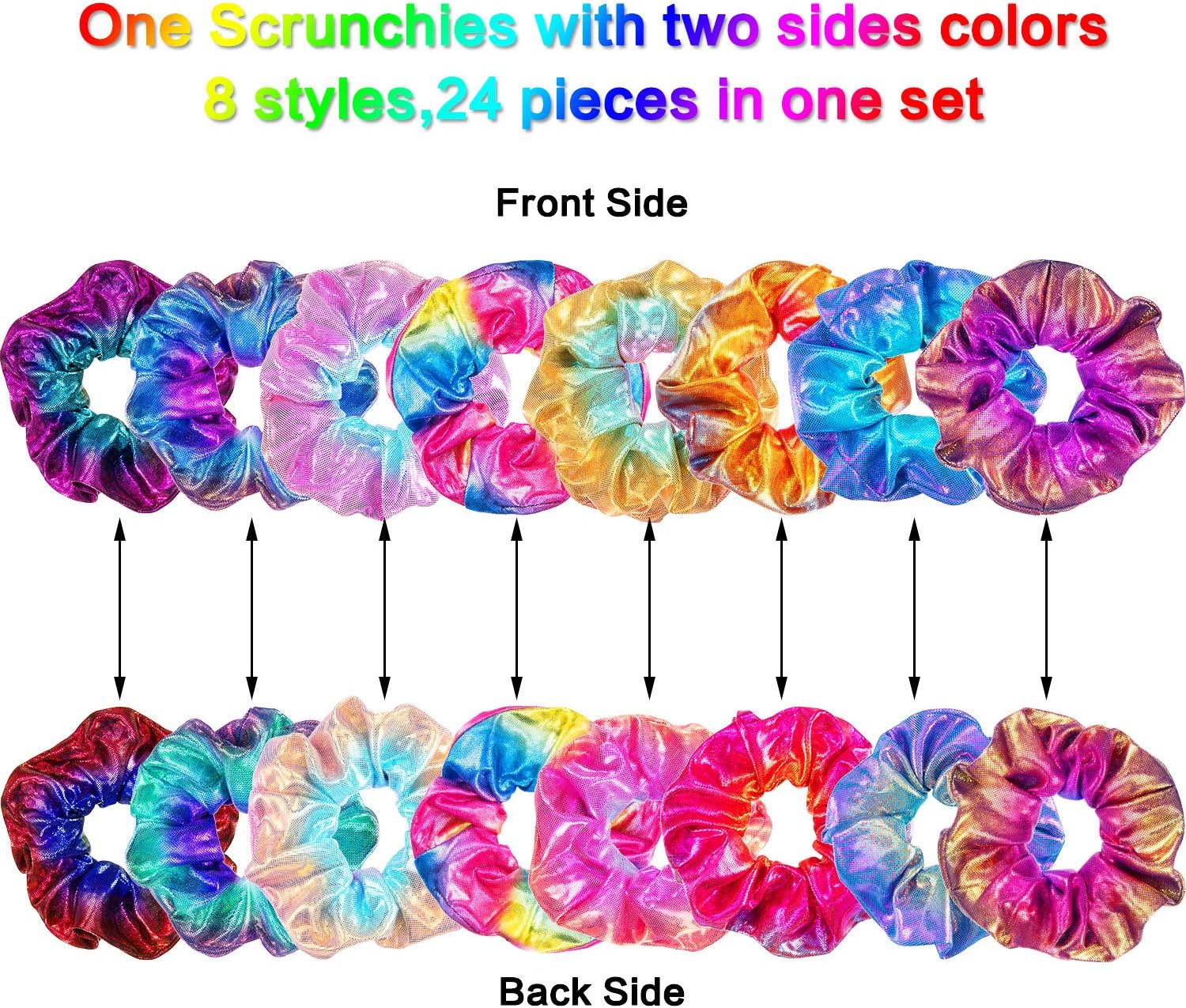 Metallic scrunchies: package includes 8 styles scrunchies, each color for 3 pieces, 18 pieces in total, enough for your need; Each scrunchy with two-side gradient mermaid colors
