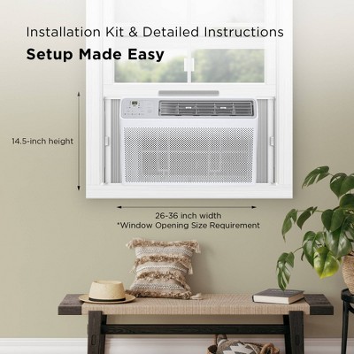 * Powers on when plugged in. Denting seen on the rear of this unit. See photos for more detail. * Stay cool and in control with the powerful cooling capacity of the TCL 8,000 BTU Window Air Conditioner. The smart and intuitive TCL Home App helps you control and cool rooms up to 350 sq. Ft. When paired with Alexa, Google Assistant or Siri-enabled devices, you can use simple voice commands to control your AC without lifting a finger. Keep your energy bill low with Sleep and Eco modes. The washable and reusable filter helps protect the life of your AC while also reducing large airborne particles like dust and pet hair. The included guided instructions mean you don t have to be an expert technician to set up your window AC. Once set up, the LED display makes controlling your window air conditioner simple, while the included remote lets you effortlessly control the unit without ever leaving the couch. It s time to enjoy your home the way it was meant to be. Highlights: MAXIMUM PERFORMANCE: The 8,000 BTU window air conditioner is powerful enough to cool rooms up to 350 sq. Ft. And features multiple fan speeds that allow you to choose your level of comfort. 3-IN-1 COMFORT: Chill out, cool down, and stay dry with TCL s 3-in-1 AC, Fan, and Dehumidifier to suit a wide array of needs. APP, REMOTE OR VOICE CONTROL: Cool your home with the friendly TCL Home App, simple voice commands using Alexa/Google Assistant/Siri or included remote. ENERGY EFFICIENT: Save energy like a pro with Sleep and Eco modes to help you save money throughout the year. EASY AND CONVENIENT CONTROL: The LED display makes controlling your window air conditioner simple, while the included remote lets you effortlessly control the unit without ever leaving the couch. RESTARTS AUTOMATICALLY: Designed to restart automatically after a power outage with Auto Restart. SETUP MADE EASY: You don t have to be an expert technician to set up your new window AC unit with the simple and easy installation kit. A screwdriver is required for setup but not included. Some window frames may require pre-drilled pilot holes. (Window Size Requirement: 26-36 inch width, 14.5 inch opening height) Specifications: Dimensions (Overall): 13.31 Inches (H) x 18.58 Inches (W) x 16.38 Inches (D) Weight: 45.19 Pounds Cable/Cord Length: 6 Feet Assembly Details: Adult Assembly Required, Tools Not Provided Number of Speeds: 3 Industry or Government Certifications: No Certifications Room Size Range: 200-500 sq. Ft. Cooling Output: 8000 BTU Airflow (CFM): 210 Amps Required: 8 Amps Volts Required: 115 Volts Battery: No Battery Used