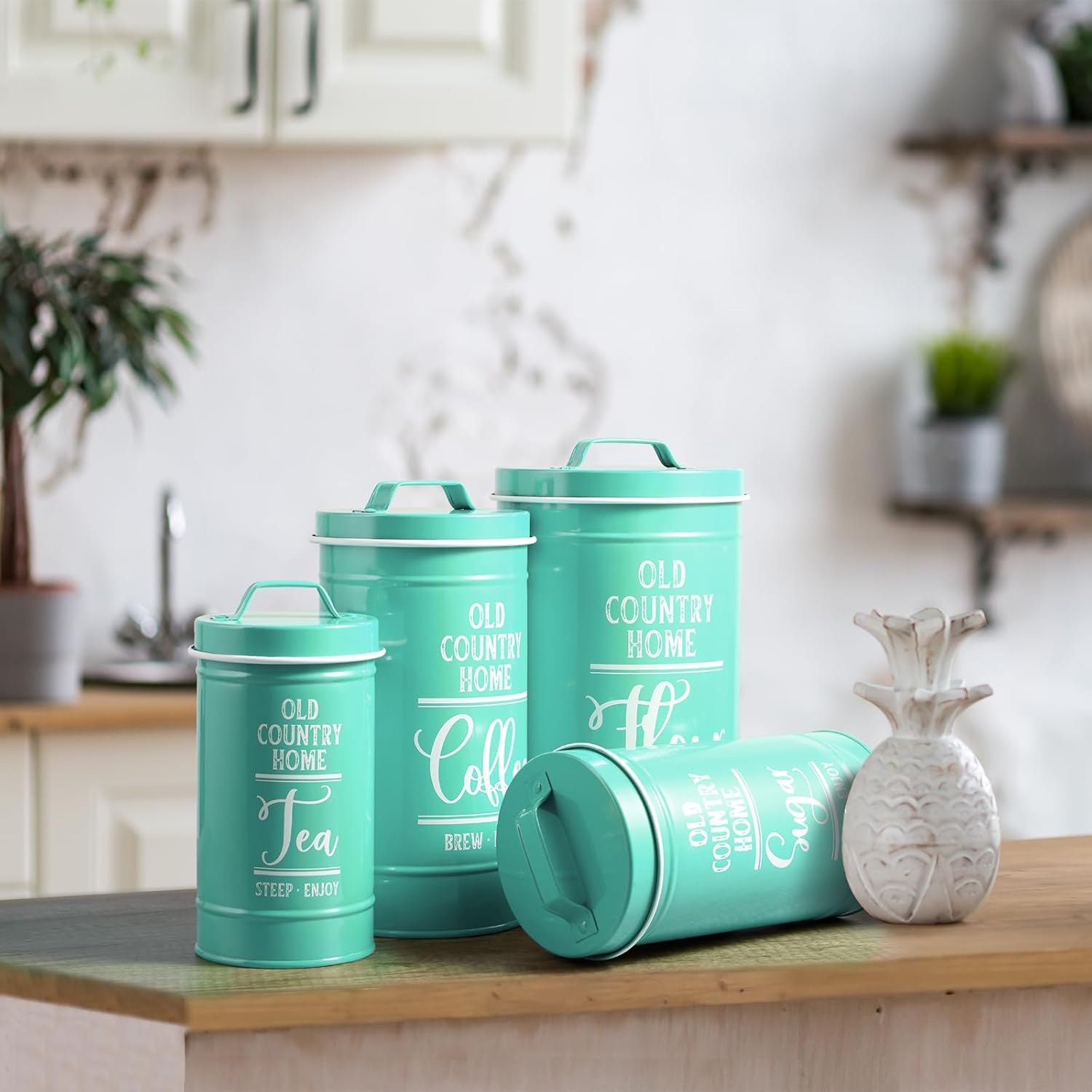 Teal Canisters for Kitchen Counter, Airtight Kitchen Canisters for Countertop, Flour and Sugar Containers, Tea Coffee Sugar Canister Set, Turquoise Kitchen Decor and Accessories, Set of 4