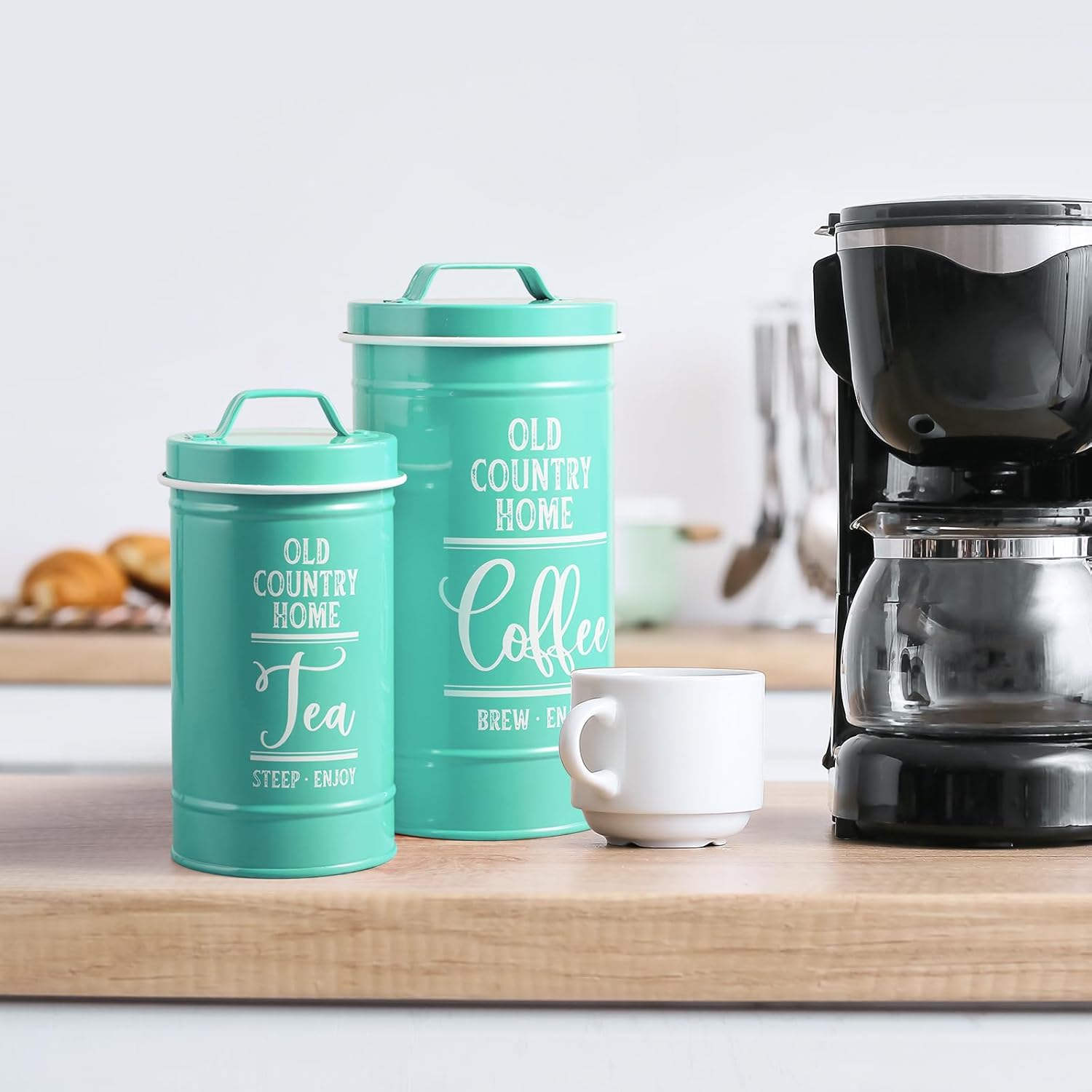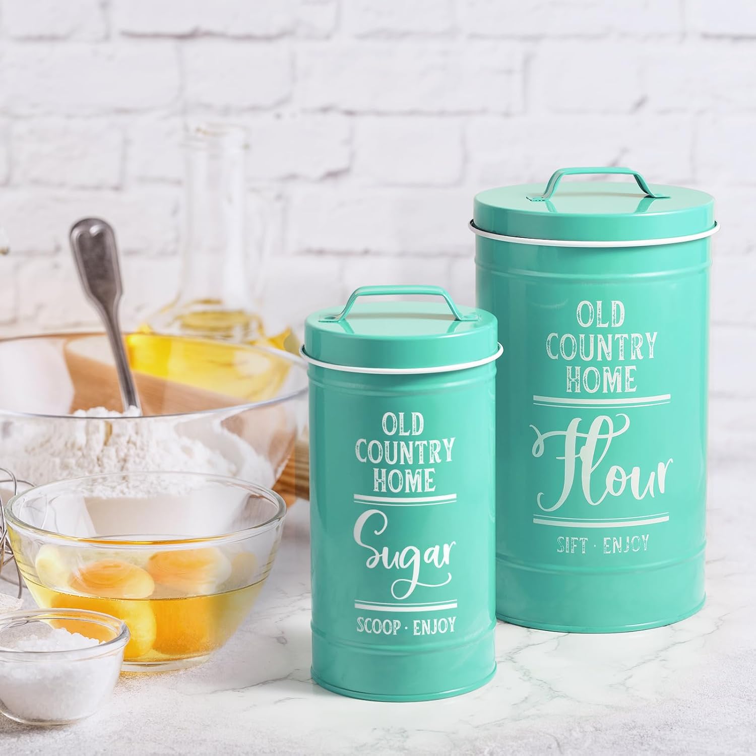 Large Sizes & Nesting Storage: Each of our teal canisters varies in size for convenience - hold 10.25 cups with the coffee canister, 7.75 cups with the sugar canister, 4 cups with the tea canister and 14.5 cups with the flour canister. Set of 4 kitchen canisters for countertop. Hand wash only. NOTE: PLEASE CHECK DIMENSIONS CAREFULLY BEFORE ORDERING.