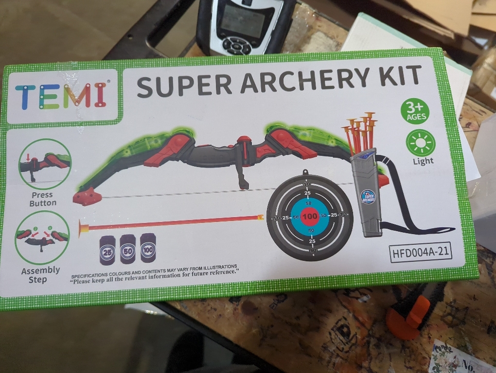 Tart Aiming & Firing Right Away – Package contains 1 main bow body, 10 suction cup arrows, target and quiver. 2*AA batteries needed(not included).