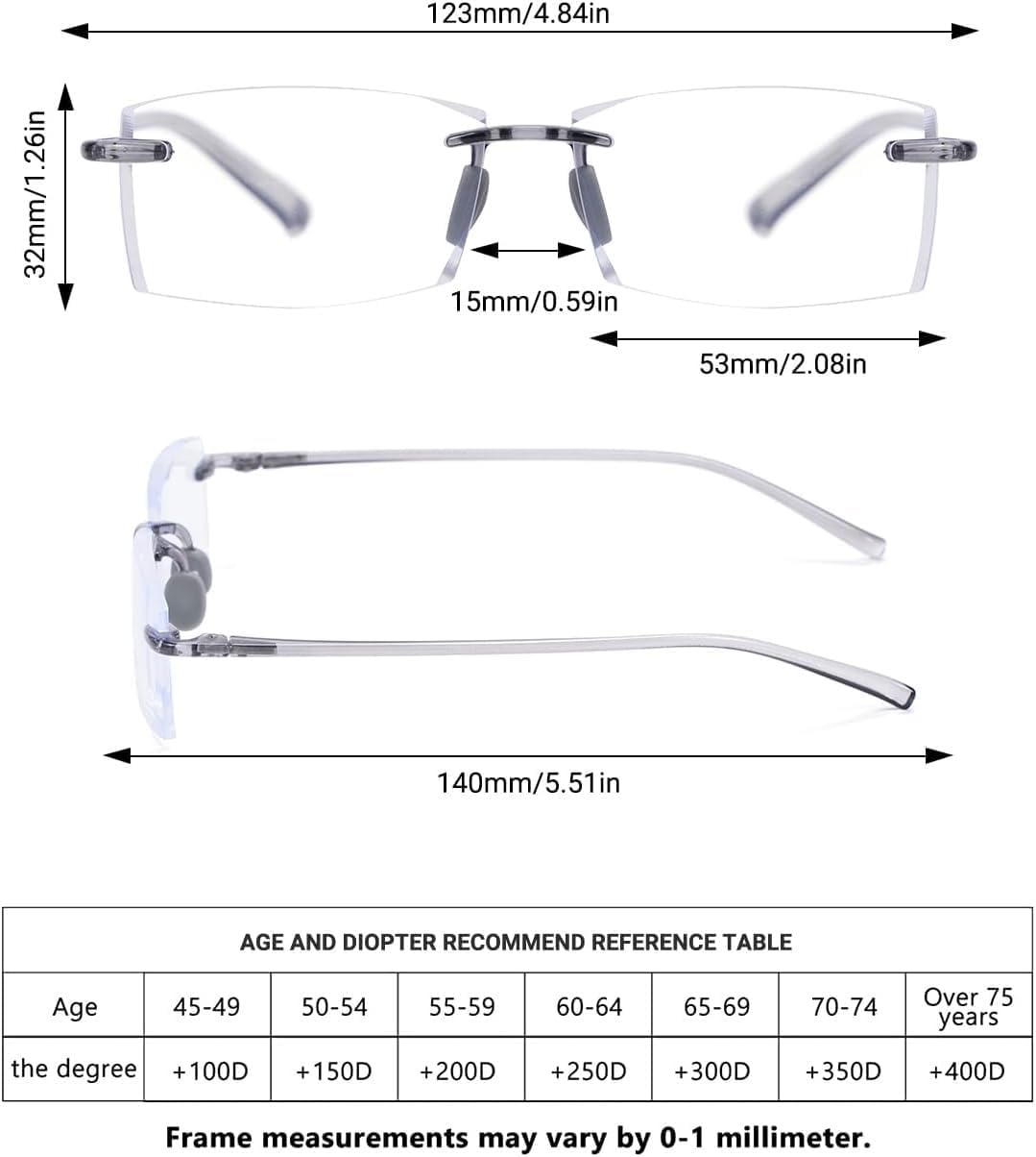 TERAISE Rimless Reading Glasses Comfortable Lightweight Frameless Reader Men Women Blue Light Blocking Computer Eyeglasses