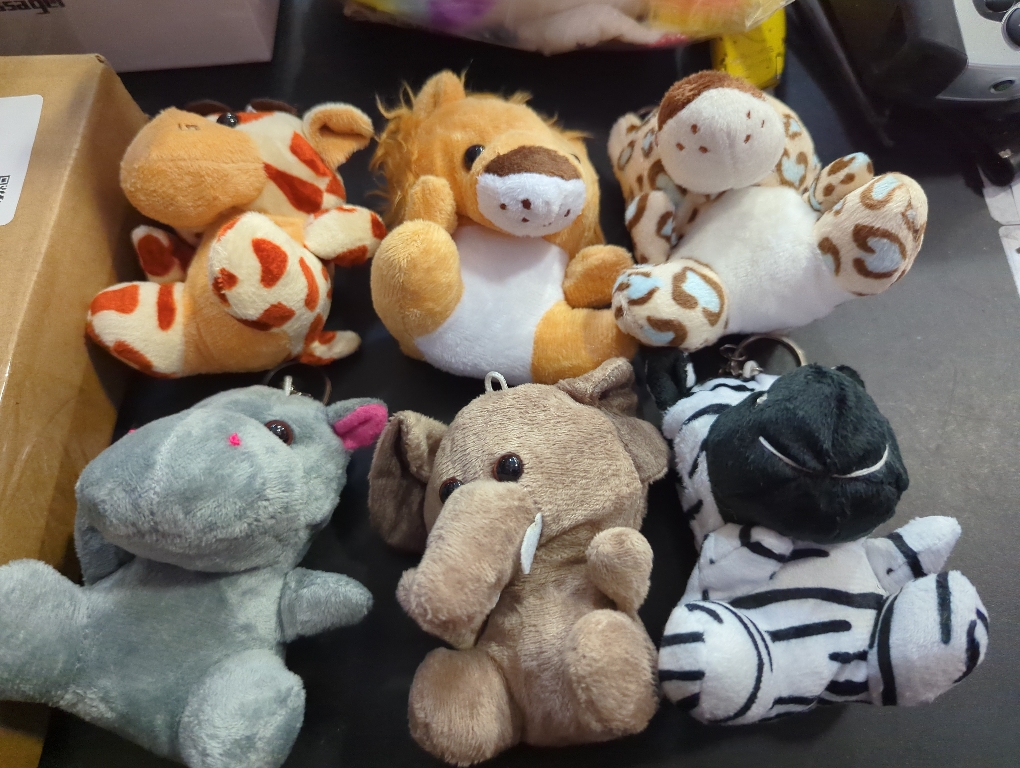 6-Pack Mini Stuffed Animals Bulk: This mini plushies bulk set includes six adorable animal plush keychains : lion, tiger, cheetah, elephant, giraffe, and zebra. Each cute plush keychain is equipped with a durable metal key ring, offering both versatility and charm. The variety of animals and the generous quantity make this set perfect for different occasions and needs.