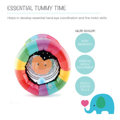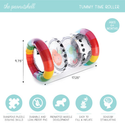 Your little one will have nothing but fun while building motor skills and cognitive recognition with the peanutshell montessori inflatable tummy time roller. our tummy roller is made of printed pvc, with articulated chambers that allow a cute bouncing ball to pass through and will lead your little one on a adventurous chase. crawling after this colorful tummy roller will develop baby's arm, shoulder, and leg muscles, and encourages hand-eye coordination. strong black & white print is great for developing eyes, and colorful stripes and adorable characters decorate the edges and ends of this roller, sure to entertain and capture baby's attention! simply inflate the roller for happy play time! after use, empty roller of air, fold or roll it, and pack up until next use. have fun with your little one, while they learn and grow! for ages 6m Features: InflatableLearning Skill: Motor SkillsRecommended Ages: 1 Year And UpMeasurements: 3 Length/Inches, 17.3 Height/Inches, 9.8 Width/InchesAssembly: Assembly RequiredBase Material: 100% PolyesterCare: Wipe CleanCountry of Origin: Imported