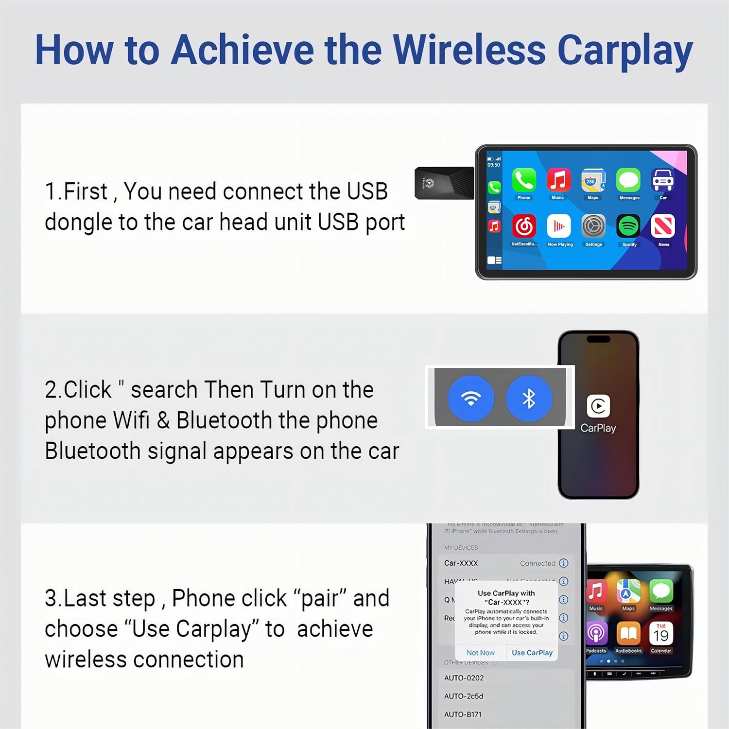Compact and portable, smart travel: Enhanced Driving Experience: Enjoy a clutter-free interior with wireless connectivity, using Bluetooth connection instead of data cables. Plug and Play: Super easy to install, just plug it in and convert your factory wired CarPlay to wireless instantly. You can synchronize the original car display navigation, music playback, calls and other routine operations, and you can also call the voice assistant. No complicated setup required, get rid of those annoying cables in seconds.