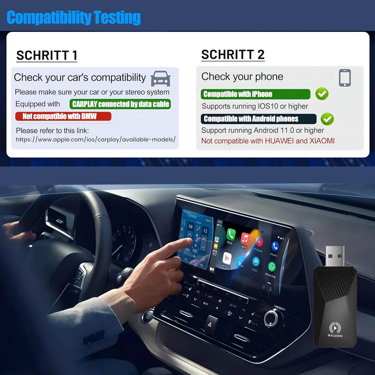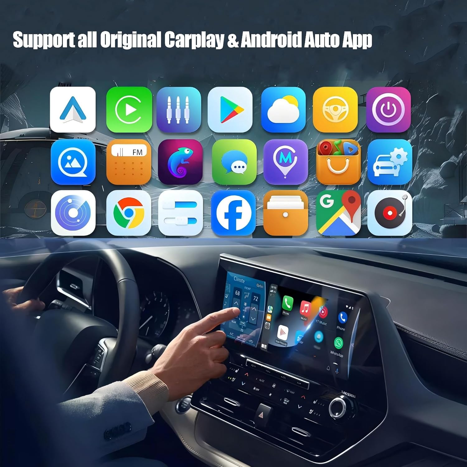 The 2-1 wireless carplay Adapter - Stream your music, maps, calls etc directly to your car's display screen through Wireless CarPlay Adapter, seamlessly integrating with both CarPlay and Android Auto systems to deliver a premium in-car experience. Convert Wired to Wireless for Apple CarPlay, it simplifies connectivity and maximizes user convenience. Supports for iPhone CarPlay and Android Auto, allowing you to switch between systems as needed. It maintains all the functionalities of your original CarPlay system, ensuring a seamless transition. Transform your driving experience into an entertainment hub by streaming your favorite content directly onto your car's display. Please note The 2-1 wireless carplay Adapter is focused solely on automotive connectivity and does not support video streaming apps like YouTube, Netflix, or Disney .