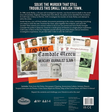 Inside the box, you will find realistic documents pertaining to the crime, containing everything you need to crack the case. Examine the clues, piece together the evidence, and solve the murder! Then submit your answer online to see if you are correct and have finally brought Camdale the justice it deserves. Great for a small group of friends or a single-player experience, Cold Case: A Story to Die For integrates puzzle-solving and crime fiction into an immersive investigative experience. 1-4 Players | Ages 14