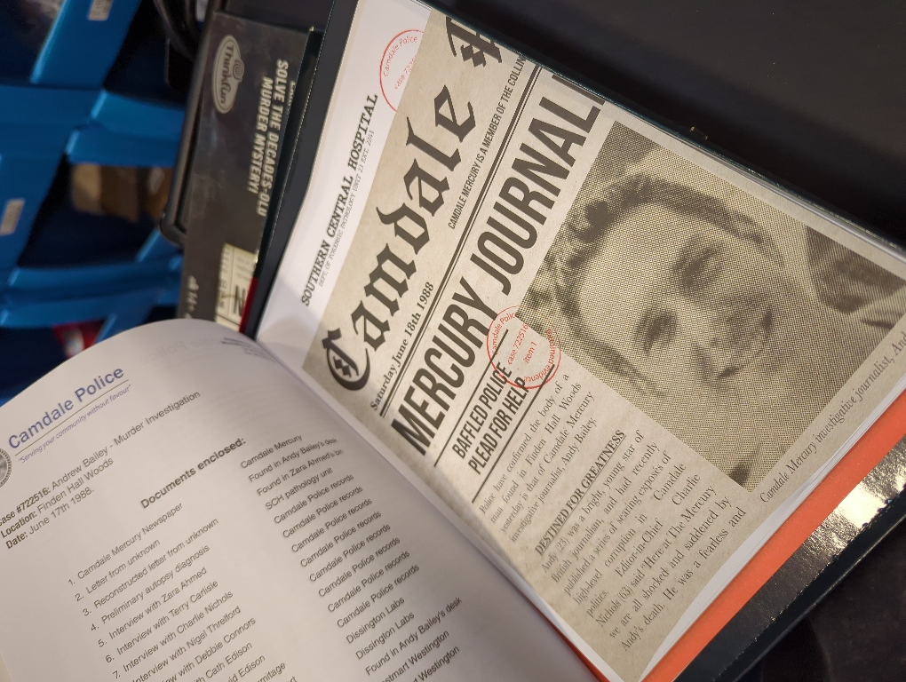 Inside the box, you will find realistic documents pertaining to the crime, containing everything you need to crack the case. Examine the clues, piece together the evidence, and solve the murder! Then submit your answer online to see if you are correct and have finally brought Camdale the justice it deserves. Great for a small group of friends or a single-player experience, Cold Case: A Story to Die For integrates puzzle-solving and crime fiction into an immersive investigative experience. 1-4 Players | Ages 14