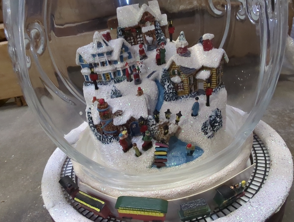 Thomas Kinkade White Christmas Crystal Snowman, Handcrafted Figurine with Lighted Village and Moving Train, Bradford Exchange Collectible