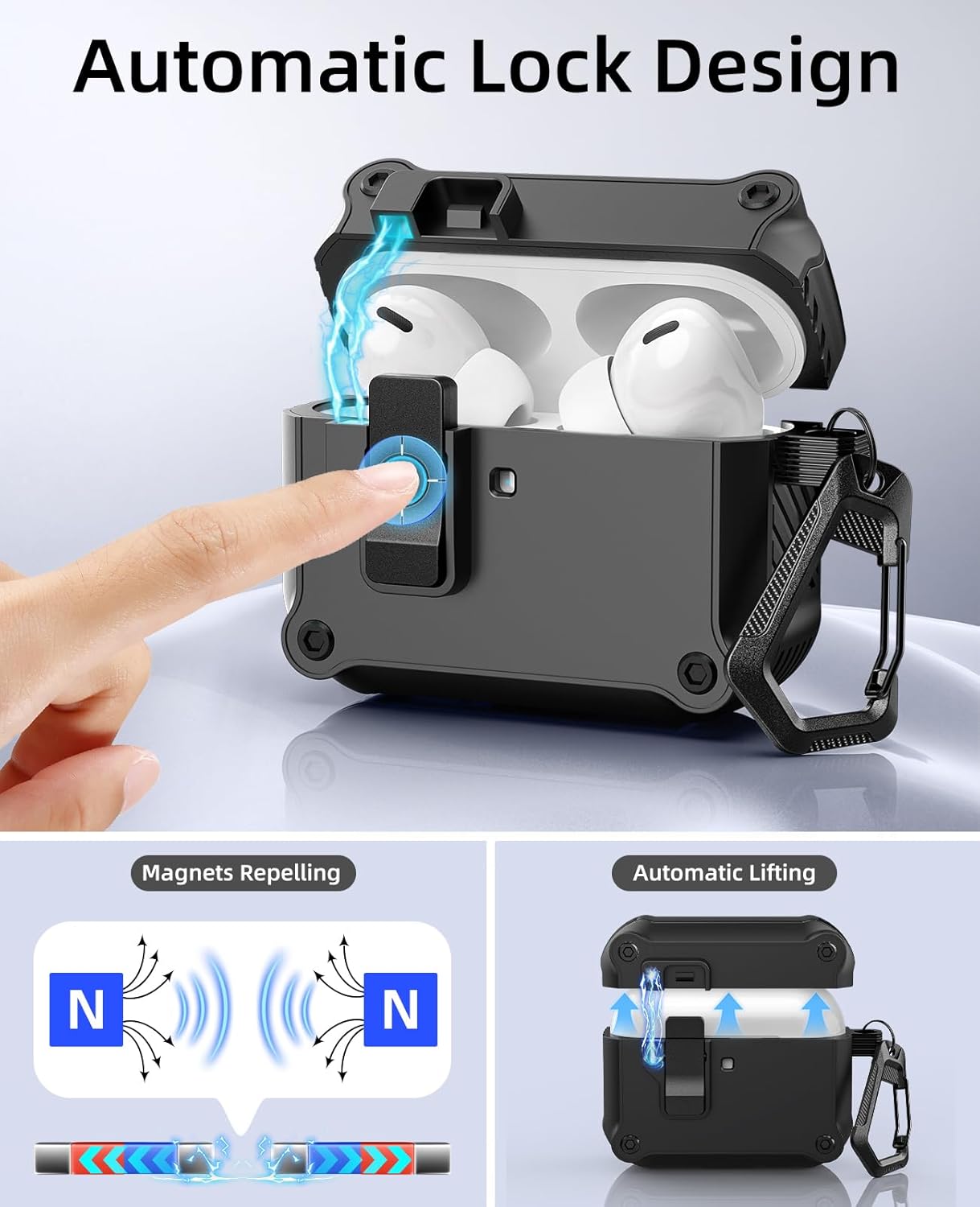 TiMOVO Case for Airpods Pro 3 (2025) with Secure Lock Clip, Automatic Pop-up Full Drop Protective Hard Cover for Apple AirPod Pro 3rd Generation with Climbing Hook & Cleaning Kit, Black