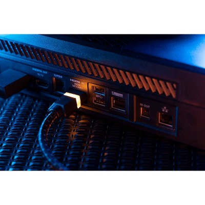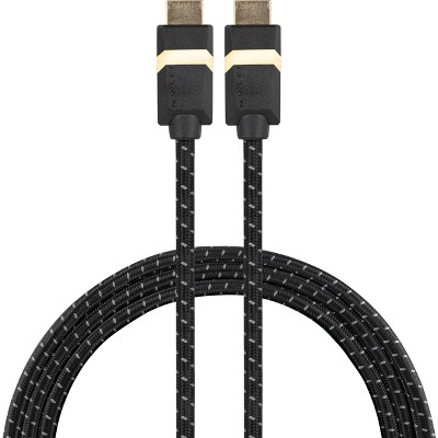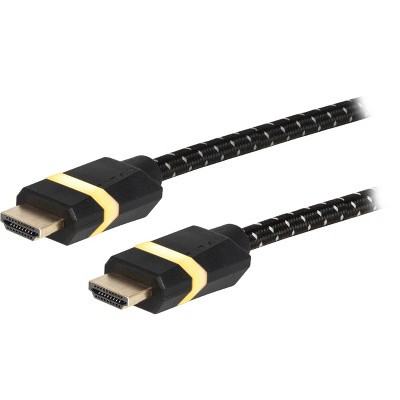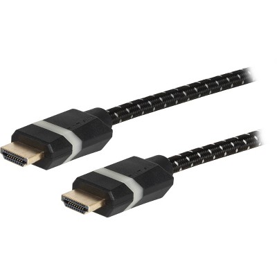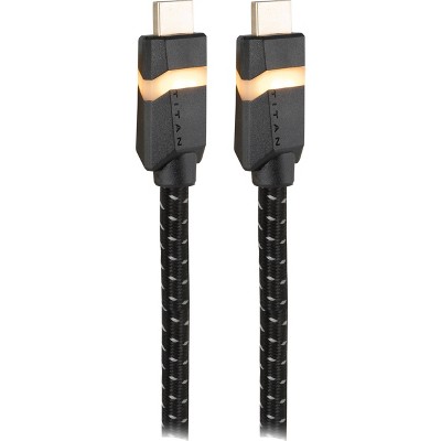Engage in the ultimate gaming and viewing experience with the Titan 8K Premium Certified Ultra High-Speed HDMI® LED Gaming Cable. Engineered to empower the player, this cable’s Dynamic HDR unleashes the brightest, clearest picture with rich, vibrant colors for real-time gaming, virtual reality, enhanced streaming, 3D movies and more. It transfers data up to 48Gbps and is future ready for enhanced audio, video and gaming in 8K@60Hz and resolutions up to 10K. This high-end cable includes Titan’s signature amber LED accent that illuminates when connected to a powered device, adding a splash of color while also helping you identify your connected equipment. Maximum shielding minimizes electromagnetic interference and boosts data transfer for lag-free, immersive entertainment at its best, keeping you at the forefront of any gaming battle. The braided cable resists stiffening and damage, and its 6ft. length allows for versatile setups. The cable heads are uniquely styled in a sleek, black housing with amber LED accent while the gold-plated contacts provide crystal-clear transfer of video and audio for amazingly rich images in 8K and 4K Ultra HD. Take your gaming, streaming and more to the next level with the Titan 8K Premium Certified Ultra High-Speed HDMI® LED Gaming Cable.