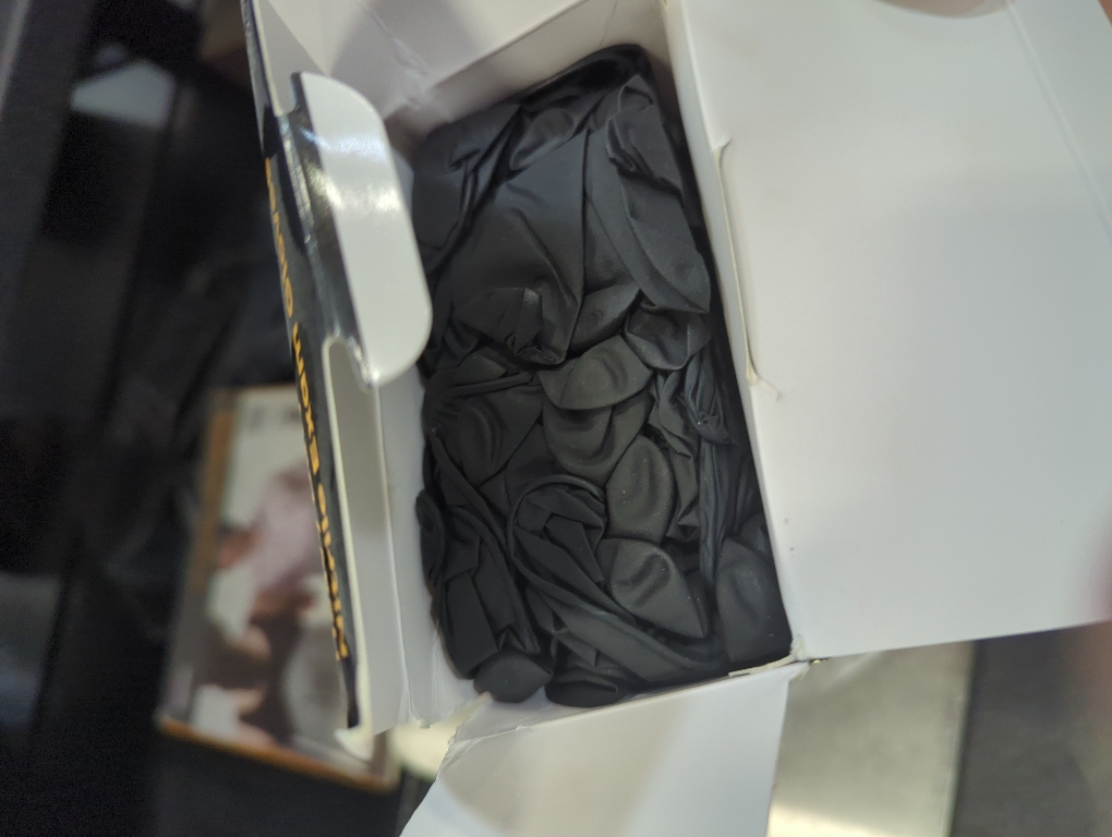 Damaged box open for inspection...Superior Material: Our 6 mil nitrile gloves are made from high-quality nitrile, providing a more durable and comfortable alternative to latex gloves and vinyl gloves, perfect for mechanics, cleaners, and food prep professionals.