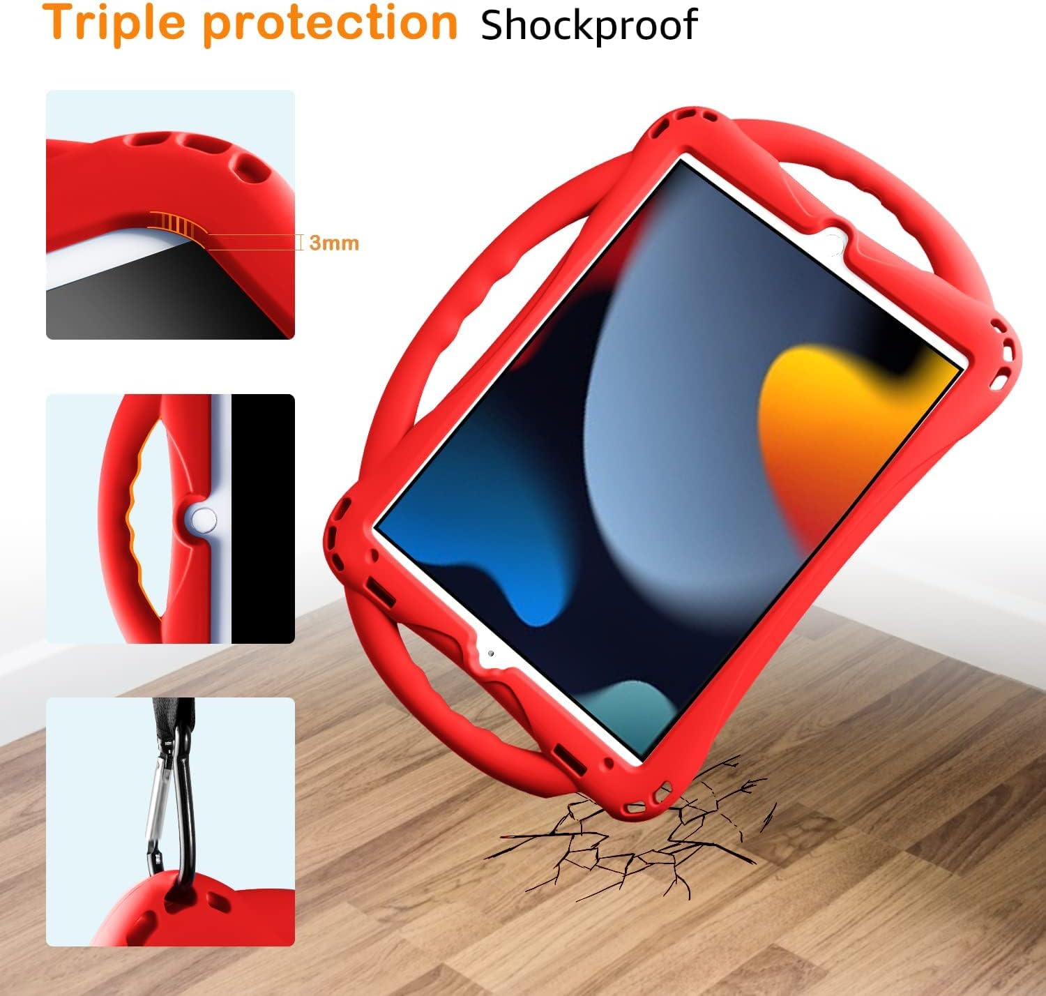3. TopEsct Kids Case for iPad 10.2 inch - Shockproof Silicone Cover with Tempered Glass Screen Protector and Strap - Compatible with iPad 9th/8th/7th Gen (2021)"(Red)