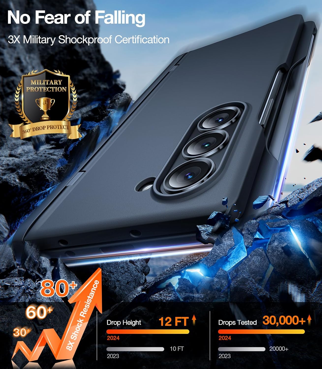 [Rugged than Ever] Built with a shockproof cover for the hinge, a strong bumper with a 3-ply cushioning structure for the edges, and raised bezels for the screen and camera, this Samsung Z Fold 6 case is tested to exceed military protection standards and has won official certification, giving you more confidence than ever