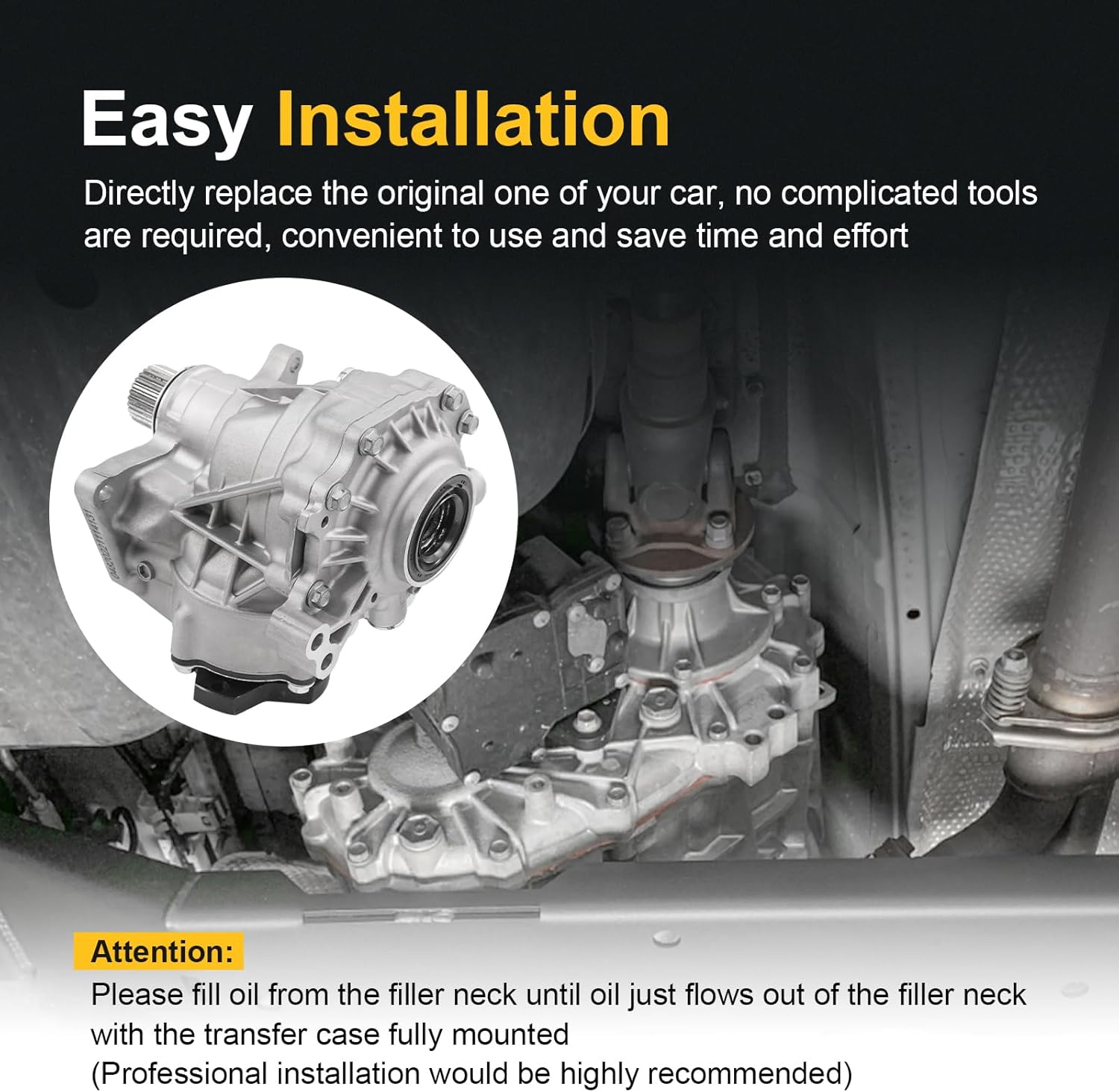 【Installation Tips】Directly replace the original one of your car, no complicated tools are required, convenient to use and save time and effort. Transfer case assembly is manufactured and tested to the same exacting quality standards as OE transfer cases to ensure long service life. Attention: Please fill oil from the filler neck until oil just flows out of the filler neck with the transfer case fully mounted(Professional installation would be highly recommended)