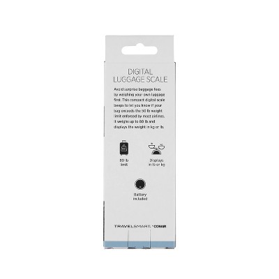 Check your luggage before you head to the airport and avoid overweight charges with this digital luggage scale. The display is a bright LCD backlit screen for day and night visibility to accurately display weight in either kg or lb.Avoid surprise baggage fees by weighing your own luggage. Portable, light-weight and easy to store at home or in your suitcase. This easy to use durable digital scale beeps to let you know if your bags exceed weight requirements. About Travel Smart: Travel Smart continues to serve the world’s growing number of travelers with all the basic comforts and connectors they need for international travel. New high-tech devices require new high-tech converters and adapters and Travel Smart is keeping up with the demand. Travelers can count on Travel Smart for all the essential gadgets and gear they need for ever-evolving laptops and mobile devices; they can also count on Travel Smart products to make their journey comfortable!