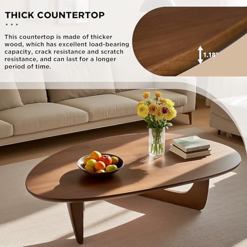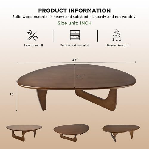 Triangle Coffee Table for Living Room with Mid-Century Soild Wood Base, Modern Atypical Top for Study Room Office Hotel Balcony Accent Walnut 43" L x 31" W x 16" H