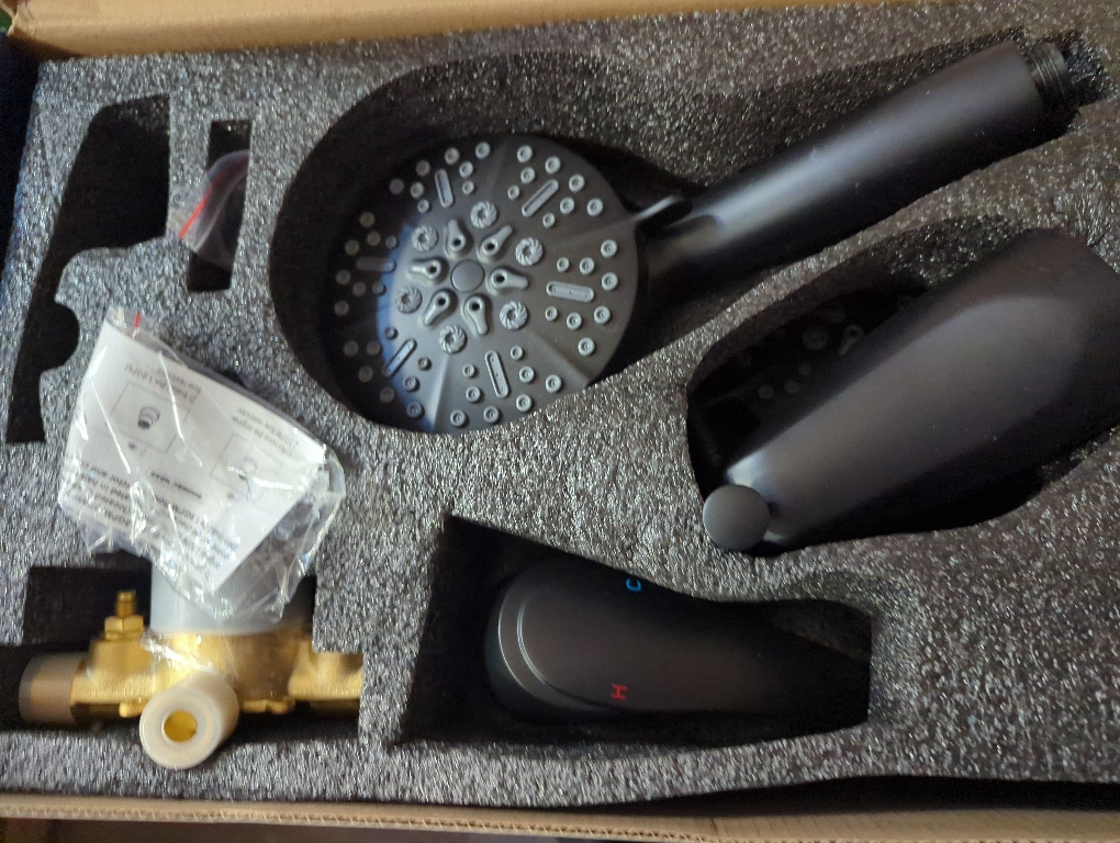 Shower faucet combo set: 7 modes handheld shower and fixed shower head, they can be used together or separately, when used together, you can have 49 different combinations of modes. Dual shower head with diverter: The overhead shower head has a 3-way water diverter. Angle-adjustable overhead bracket allows you to flexibly adjust the angle of the handheld shower holder. The shower angle can be easily adjusted to suit children and adults, providing a perfect shower experience for every family member. Shower faucet set complete with tub spout: This bathtub spout can fill your bathtub quickly to save your valuable time. Lift up the knob to close and press down to open. Premium quality materials: The main shower valve is made of selected high quality brass material to ensure non-corrosive, and black surface give an elegant look to any bathroom decor. Prevent water hammer: The pressure balance valve has built-in Shut Off Stops to effectively prevent water hammer noise and control the water pressure. Pressure balance valve protect you from being scalded by sudden changes in hot or cold water pressure.