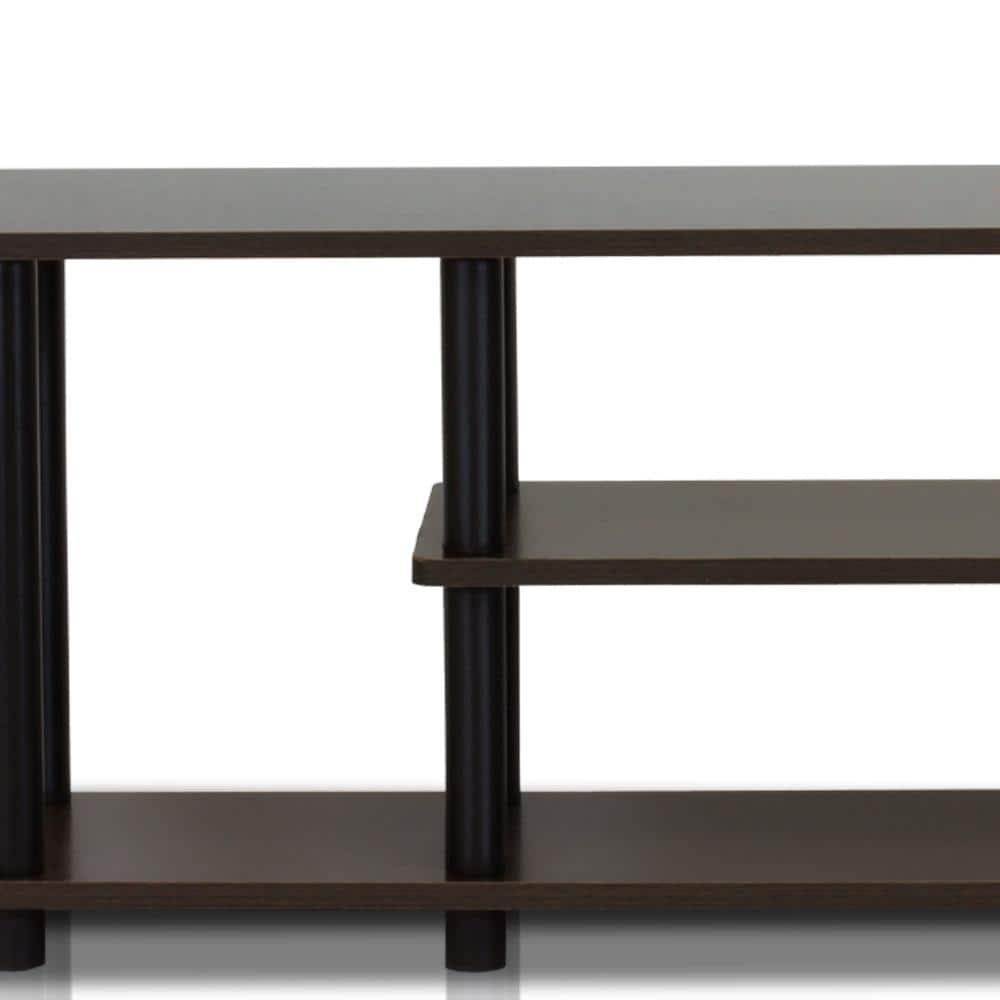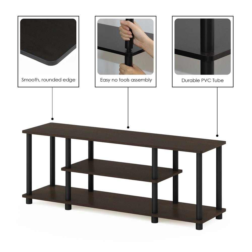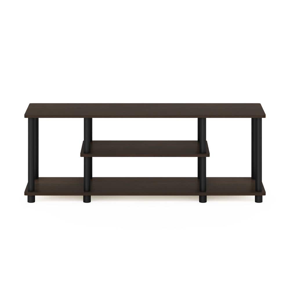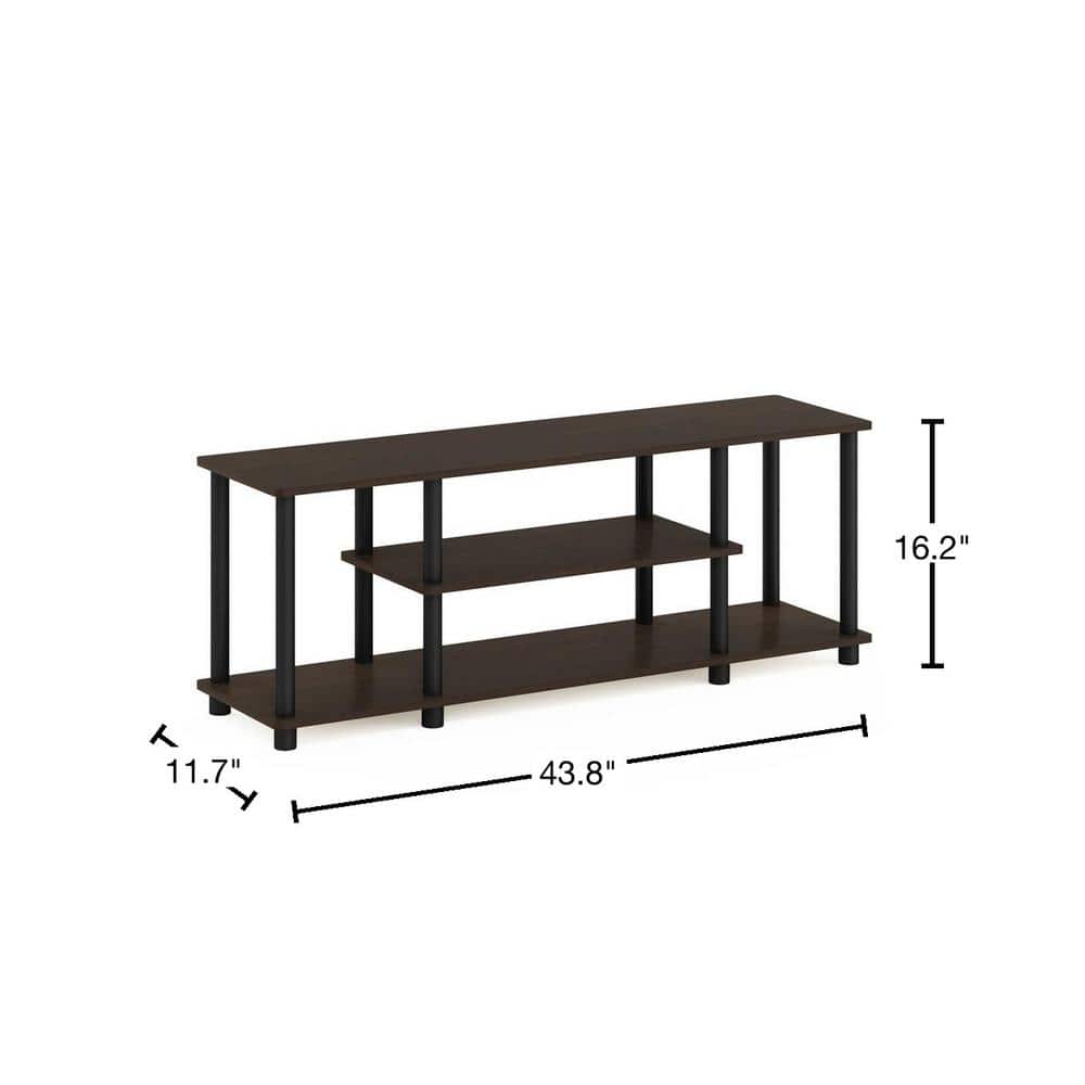 Size 44 in. Color Dark Brown Furinno Turn-N-Tube Series: No Tools Entertainment TV Stand.(1) Unique Structure: Open display rack, shelves provide easy storage and display of TV or other audio/video accessories. Suitable for any rooms. Designed to meet the demand of low cost but durable and efficient furniture. It is proven to be the most popular RTA furniture due to its functionality, price, and the no hassle assembly. (2) Smart Design: Easy Assembly and No tools required. A smart design that uses durable recycled PVC tubes and engineered medium density composite wood that withstand heavy weight. Just repeat the twist, turn and stack mechanism, and the whole unit can be assembled within 10 minutes. Experience the fun of D-I-Y even with your kids . (3) The medium density composite wood is manufactured in Malaysia and comply with the green rules of production. It is made from 15mm Composite wood with PU lamination and 34mm plastic pole. There is no foul smell, durable and the material is the most stable amongst the particle boards. The PVC tube is made from recycled plastic and is tested for its durability. A simple attitude towards lifestyle is reflected directly on the design of Furinno Furniture, creating a trend of simply nature. All the products are produced and assembled 100-percent in Malaysia with 95% - 100% recycled materials. Care instructions: wipe clean with clean damped cloth. Avoid using harsh chemicals. Pictures are for illustration purpose. All decor items are not included in this offer.. TV stand holds up to 50 in. flat screen panel. Open shelves for easy storage and display. Easy no tool assembly in under 10 minutes. 43.8 in. W x 16.2 in. H x 11.7 in. D. Sturdy on flat surface. Manufactured from E1 grade composite wood. Assembly Required: Assembly Required. Number of Drawers: 0. Style: Industrial. No of Shelves: 3. Features: Shelves. Material: Particle Board